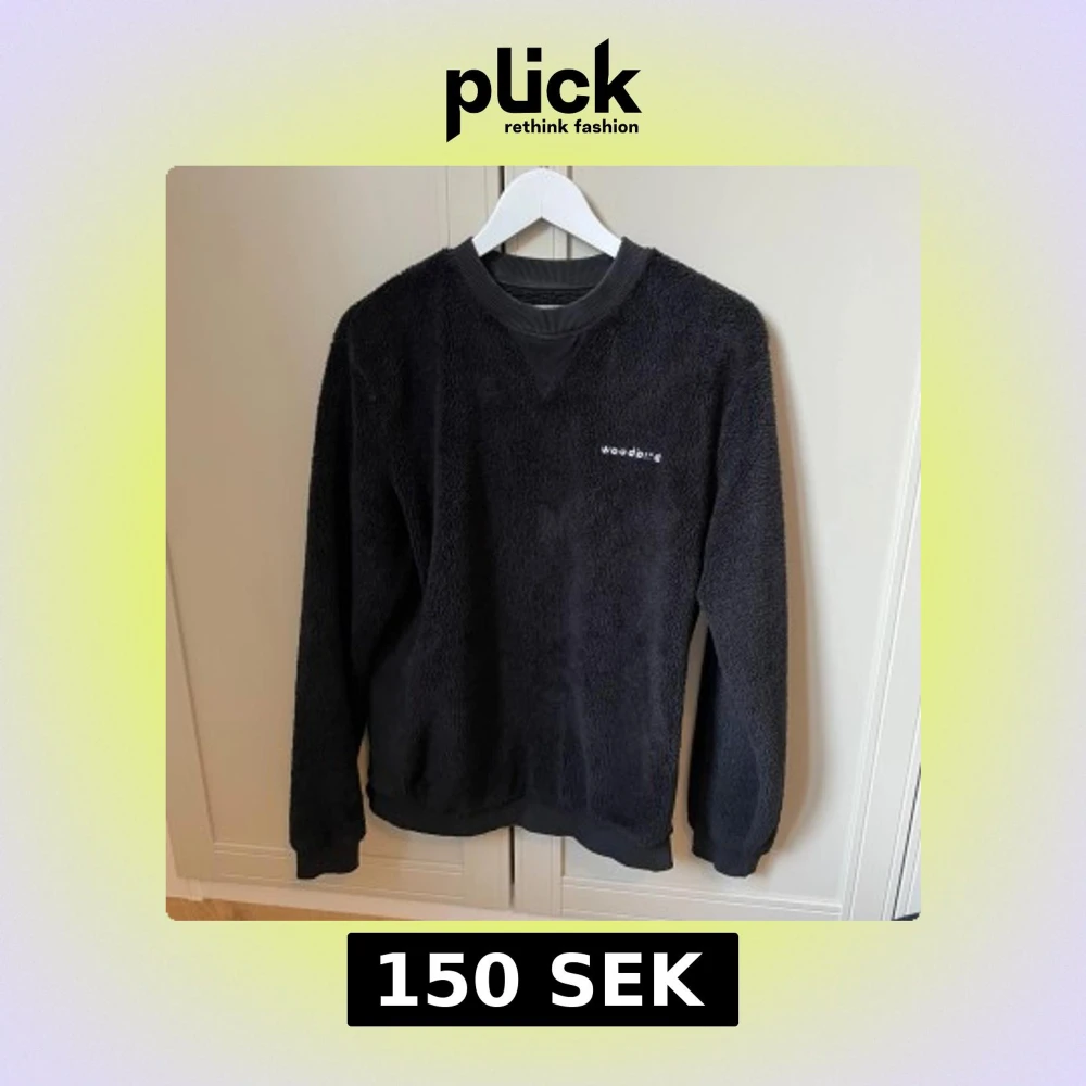 Mysig svart fleece tröja från Woodbird med rund hals och ribbade muddar. Perfekt för kyliga dagar. Tröjan har en diskret logga på bröstet.