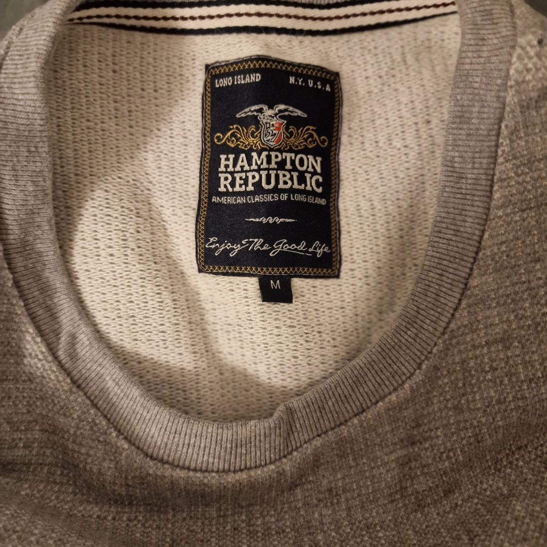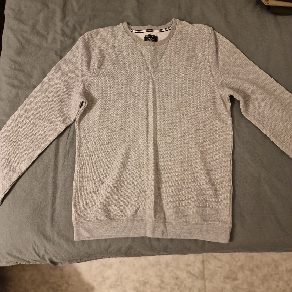 Snygg grå långärmad tröja från Hampton Republic i storlek M. Tröjan har en klassisk rund halsringning och diskret struktur i tyget. Perfekt för dig som gillar stilrena och enkla plagg med en chill vibe. Passar till jeans eller chinos för en clean look.