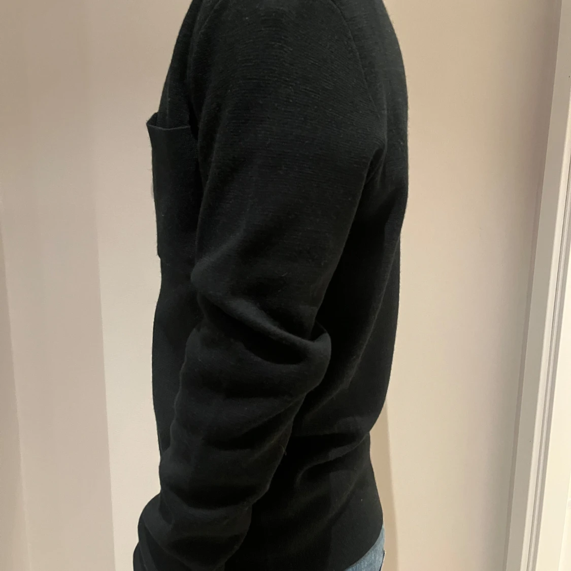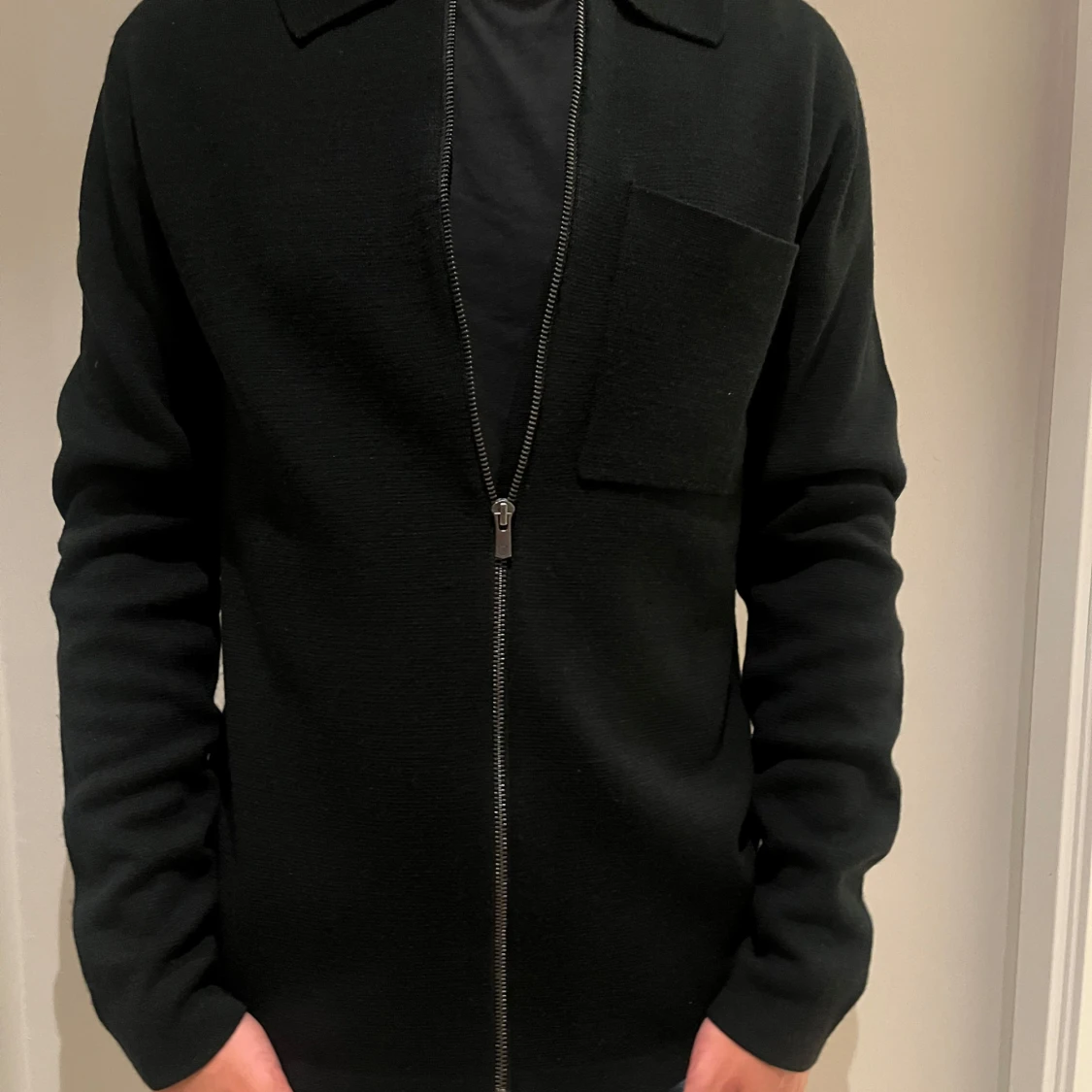 Stilren svart overshirt med lång ärm och rak passform. Jackan har en stor bröstficka och hel dragkedja framtill. Perfekt för lager-på-lager och funkar till många olika outfits. Materialet är mjukt och känns skönt mot huden. Jätte bra skick aldrig använd.
