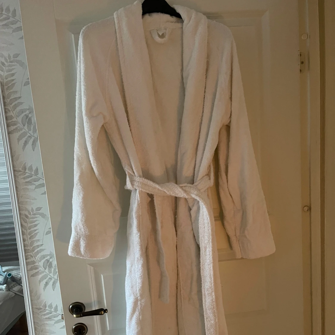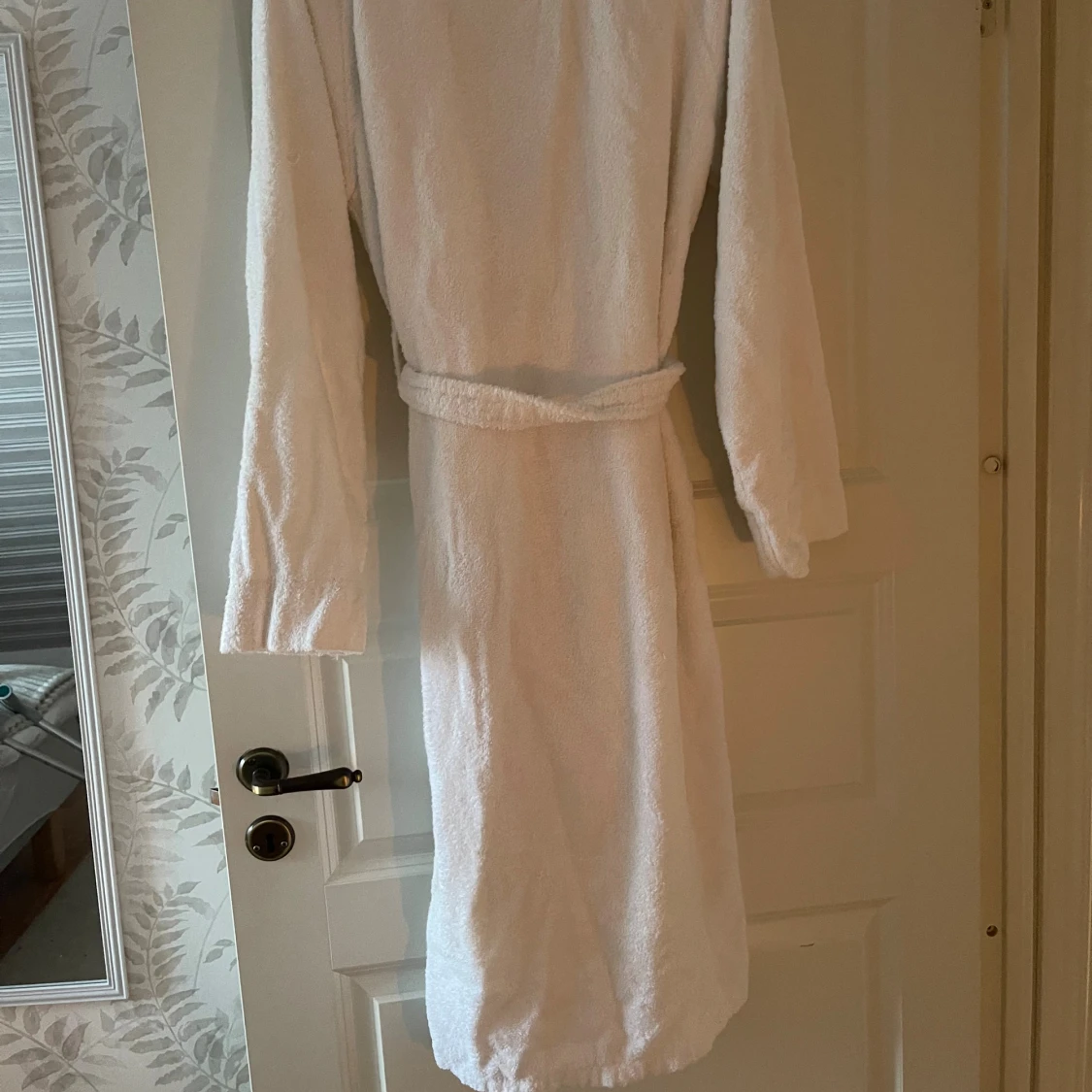 Mysig vit morgonrock i mjuk frotté med långa ärmar och knytskärp i midjan. Perfekt att slänga på sig efter duschen eller när du vill chilla hemma. Klassisk modell med skön känsla och enkel design.