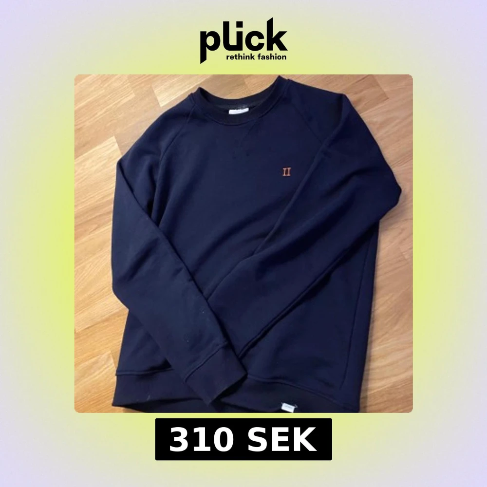 Säljer en stilren mörkblå sweatshirt med en liten broderad detalj i orange på bröstet. Tröjan har långa ärmar och en rund halsringning med ribbade muddar. Perfekt för en avslappnad look.