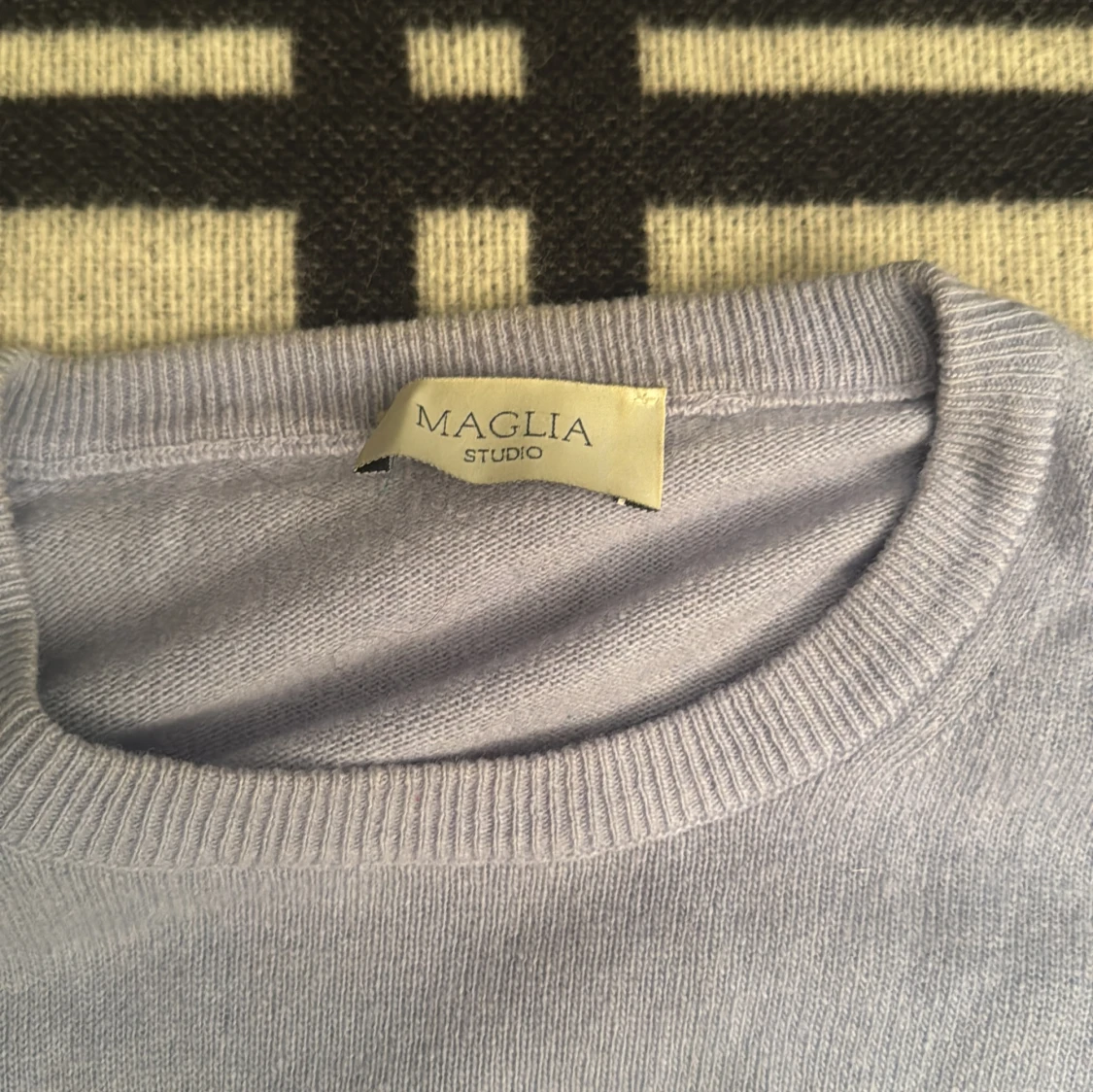 En stilren ljuslila stickad tröja från Maglia Studio. Tröjan har rund halsringning, ribbade muddar och lång ärm. Perfekt för lager-på-lager och enkel att matcha med jeans eller kjol.