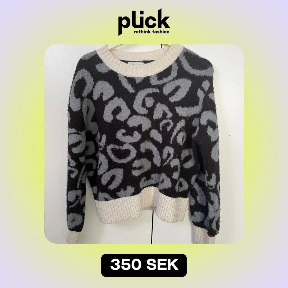 Säljer en supercool tröja från Grunt i storlek M. Den har ett grått och svart leopardmönster som verkligen sticker ut. Tröjan är långärmad och har ribbade kanter vid hals, ärmslut och nederkant. Perfekt för höst och vinter! Storlek M, men mindre i storleken.