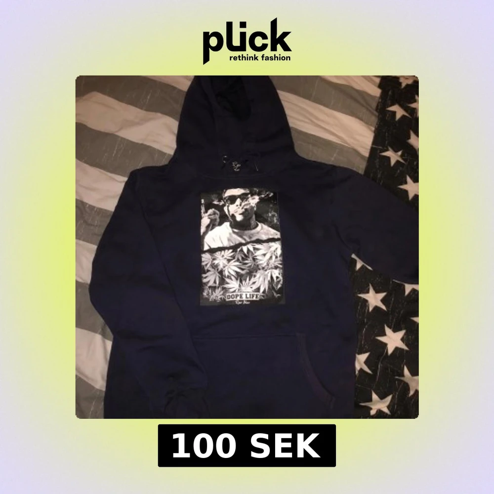 Cool svart hoodie med ett stort tryck på framsidan som visar en person med solglasögon och texten 'Dope Life'. Perfekt för en avslappnad stil.