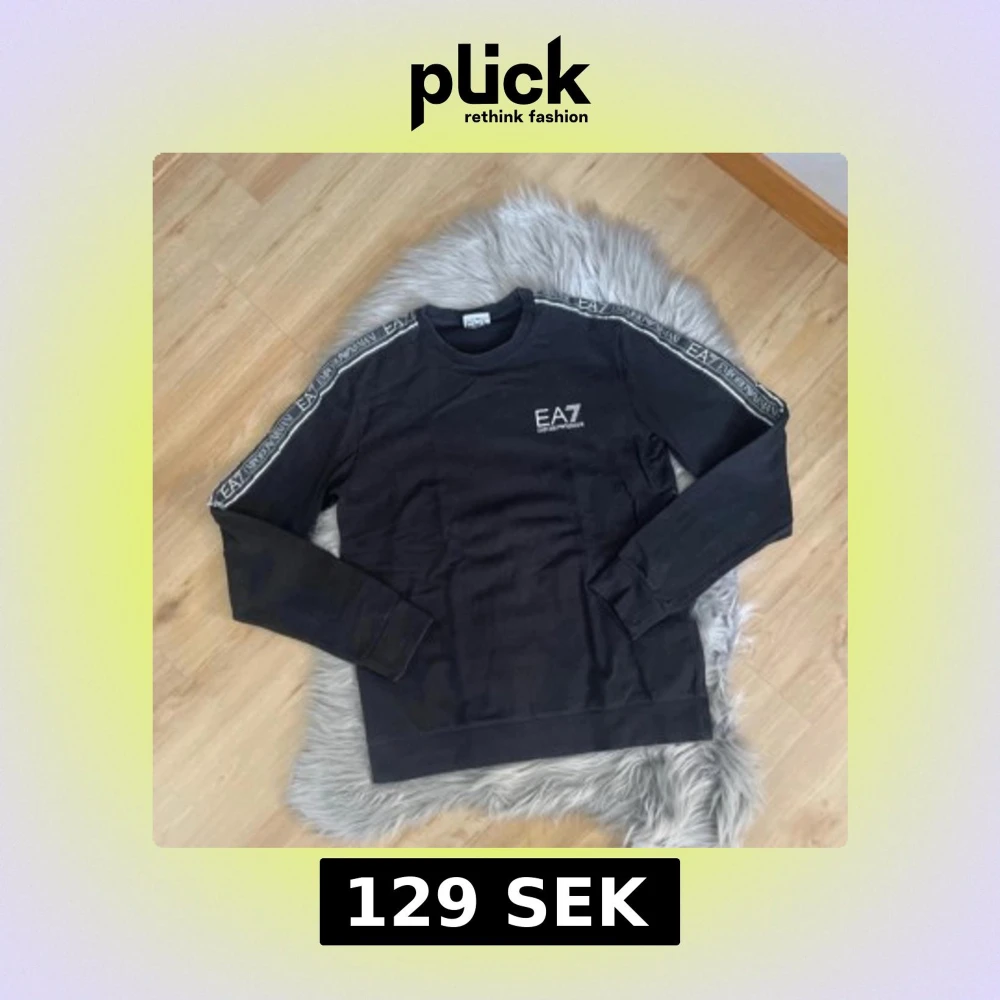 Snygg svart långärmad tröja från Emporio Armani med EA7-logga på bröstet och längs ärmarna. Perfekt för en stilren look. Tröjan har en rund halsringning och är tillverkad i ett mjukt material.