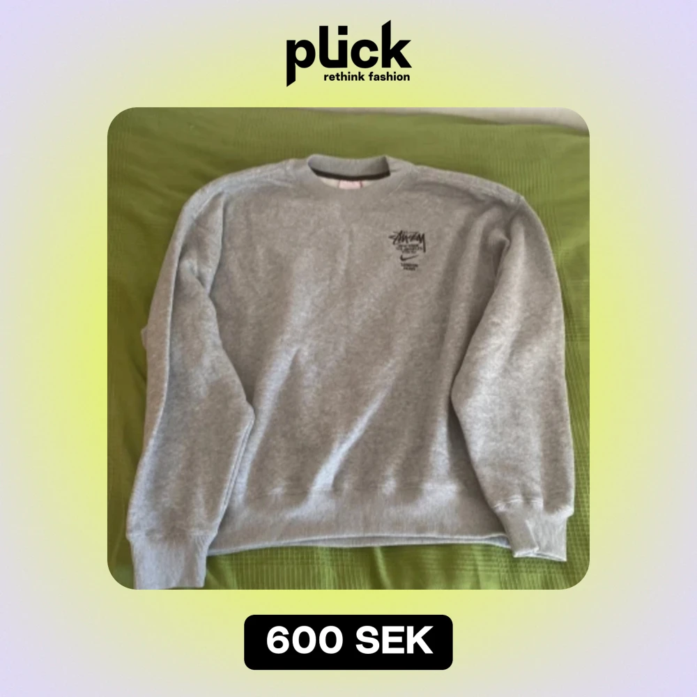 Säljer en snygg grå sweatshirt från Nike i samarbete med Stüssy. Använd ett fåtal gånger men säljer den då den var lite lång i ärmarna för min smak.