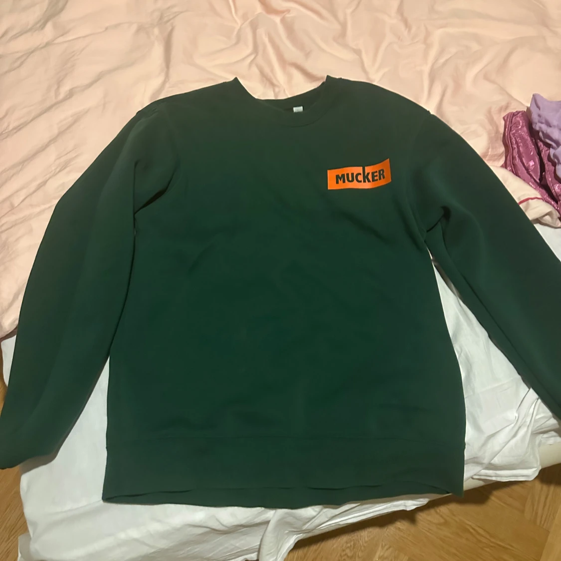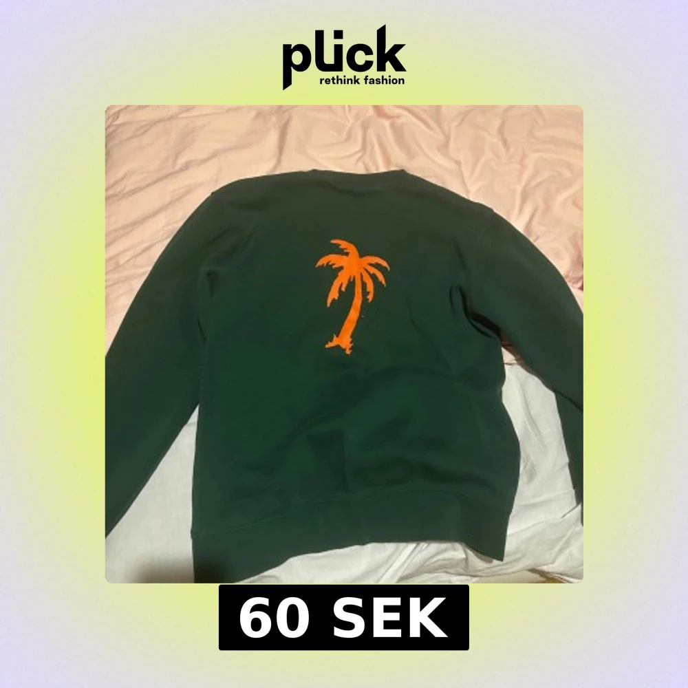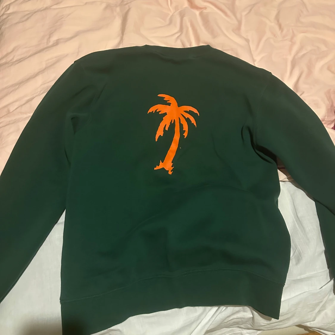 Mörkgrön sweatshirt från Mucker med orange tryck framtill och en stor orange palm på ryggen. Tröjan har rund hals, långa ärmar och är gjord i mjuk bomullsmix. Perfekt för dig som gillar streetwear och vill sticka ut med coola detaljer.