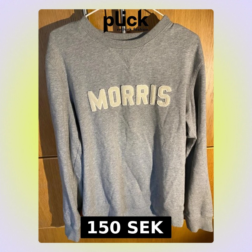 Snygg grå sweatshirt från Morris Gents i storlek M. Tröjan har ett broderat MORRIS-tryck framtill i vitt och klassisk rund hals. Tillverkad i mjuk bomull med ribbade muddar vid ärmslut och nederkant. Perfekt för chill dagar.