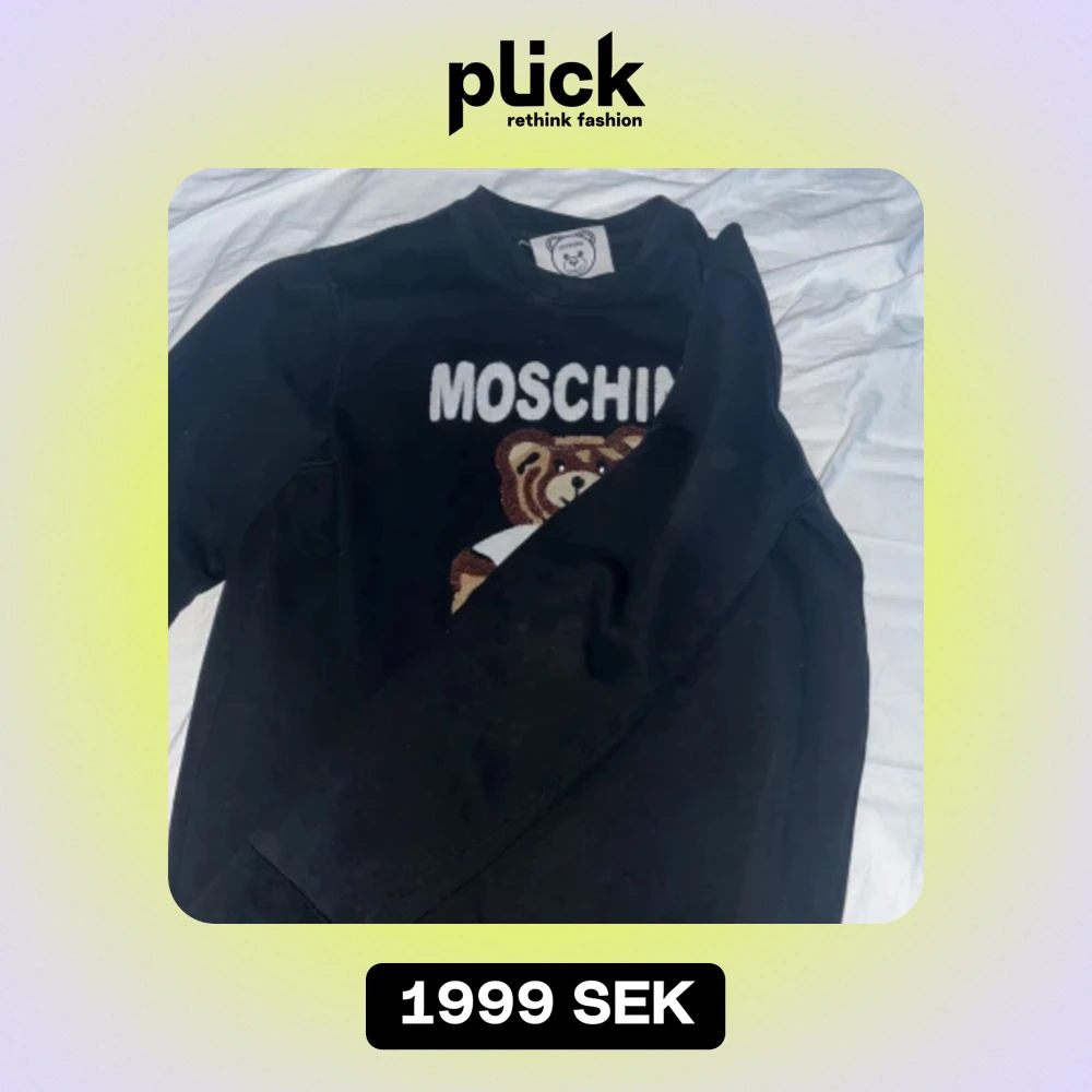 Säljer en stilren Moschino-tröja med den ikoniska nallebjörnen. Jag har använt den 6-9 gånger, så den är i mycket bra skick. Perfekt för dig som vill ha något unikt och trendigt! Storlek: M Pris: 1999kr Hör
