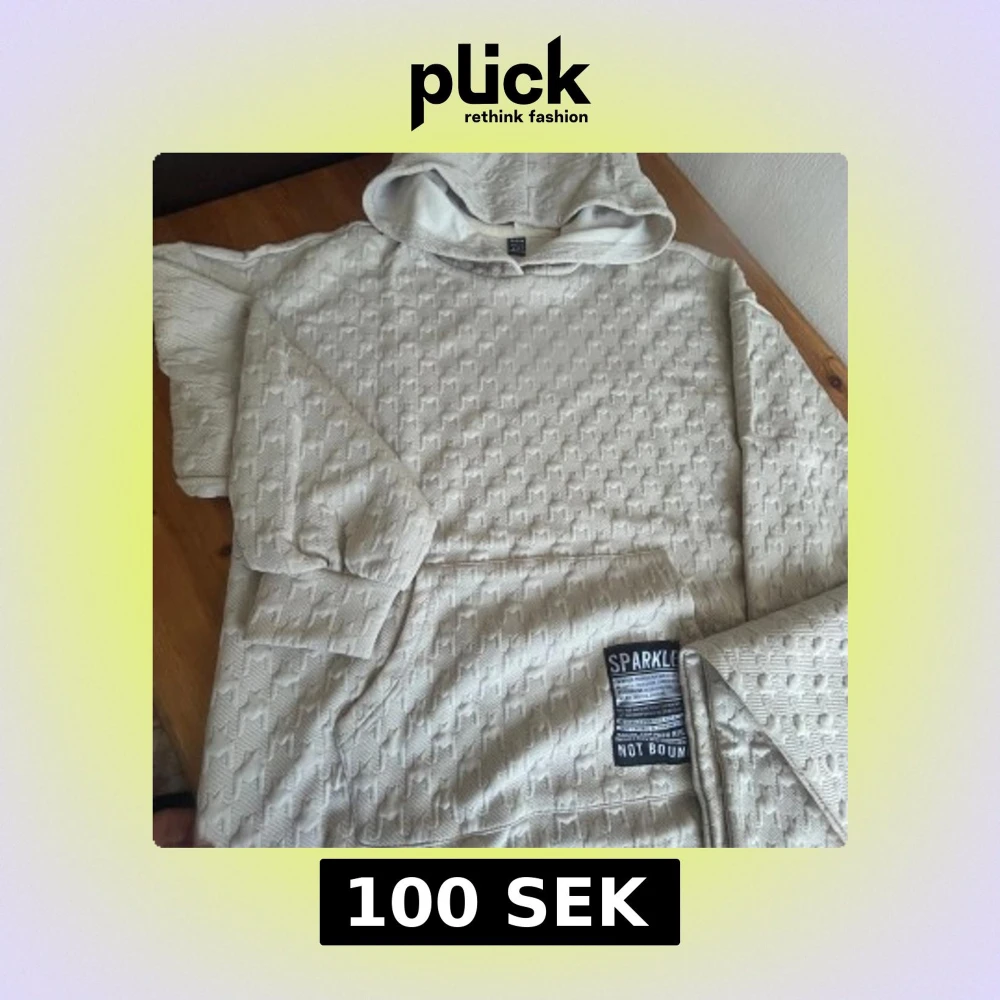 Säljer en beige hoodie från SHEIN med ett unikt mönster. Den har en stor ficka framtill och en bekväm huva. Perfekt för en avslappnad stil. Storlek: Medium -38