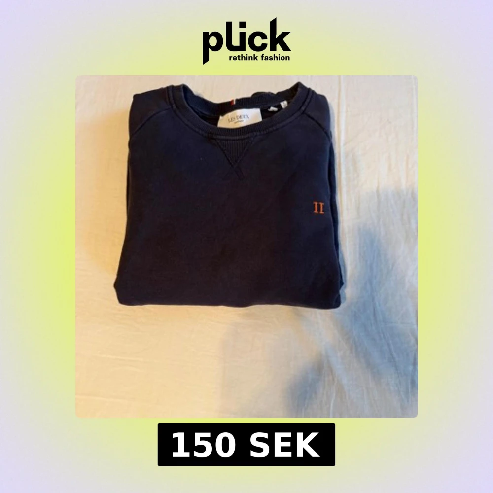 Säljer en stilren mörkblå tröja från Les Deux med en liten broderad logga på bröstet. Tröjan har långa ärmar och ribbade muddar vid ärmslut och nederkant. Perfekt för en avslappnad look. Den har används ett antal gånger
