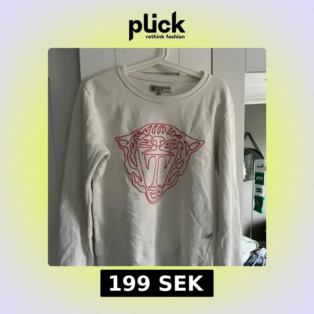 Vit sweatshirt från Tiger of Sweden Jeans med ett stort rött tigertryck på bröstet. Tröjan har rund hals, långa ärmar och är gjord i mjuk bomull. Perfekt för dig som gillar stilrena plagg med en cool detalj framtill.