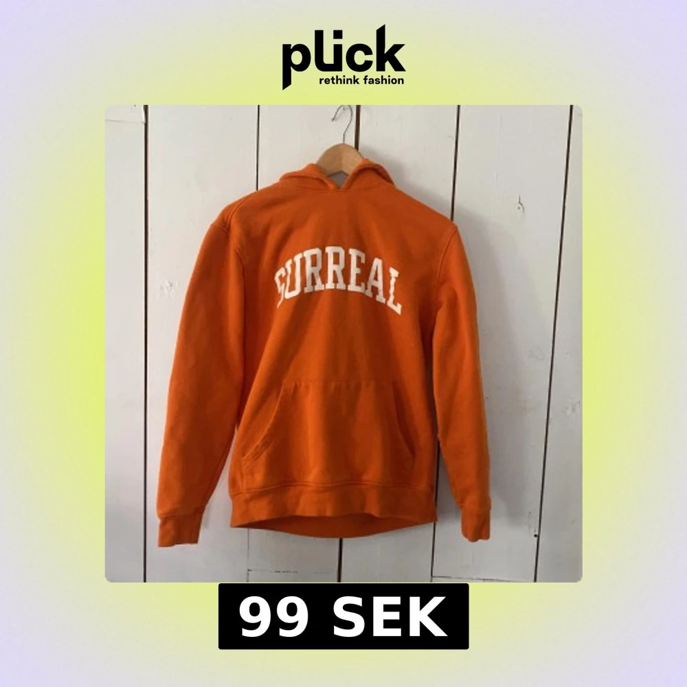 Orange hoodie från WINWIN i bomull med vit text 'SURREAL' på bröstet. Klassisk känguruficka framtill, huva och långa ärmar. Perfekt för dig som gillar streetstyle och vill sticka ut med en färgstark look.
