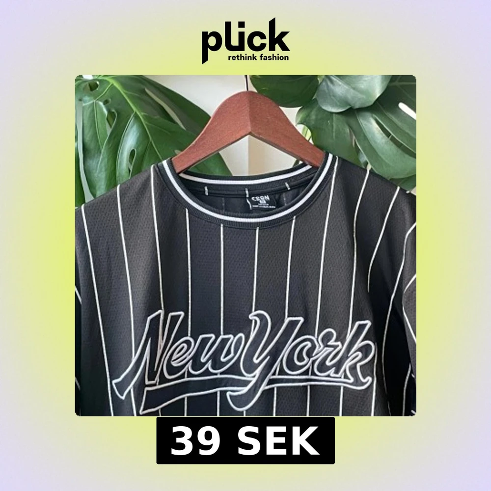 Säljer en svart pikétröja från Cson med vita vertikala ränder och stor broderad New York-text på bröstet. Tröjan har korta ärmar och sportig känsla, perfekt för dig som gillar streetstyle. Materialet är lätt och andas, vilket gör den skön att bära.