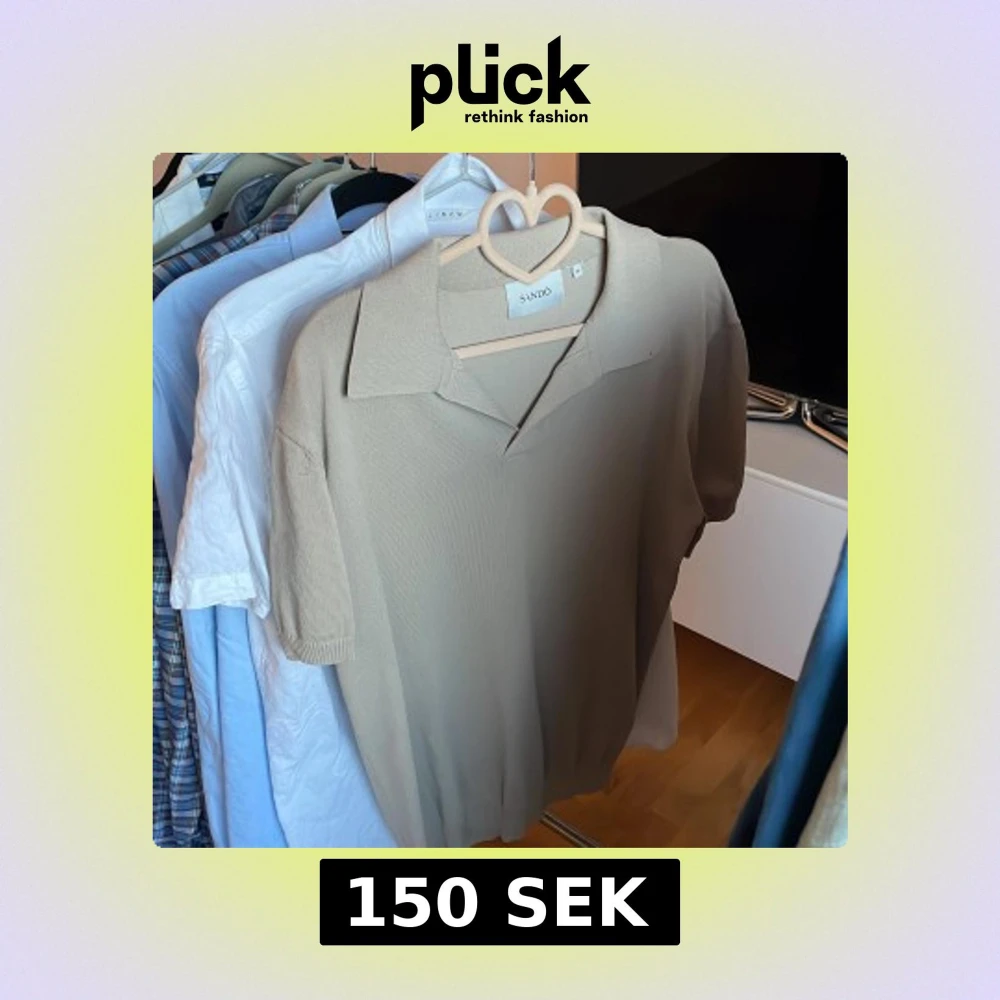 Säljer en stilren beige/kaki pikétröja från Sandö. Tröjan har korta ärmar och en klassisk krage.