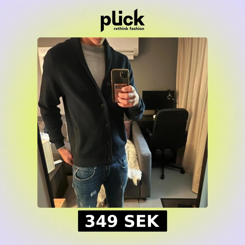 Snygg mörkblå kofta från M&S i ribbad bomullsblandning. Klassisk design med knappar framtill, bred krage och långa ärmar. Perfekt att slänga på över en t-shirt eller skjorta för en chill och stilren look.
