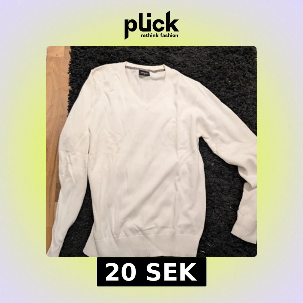 Vit v-ringad tröja från Adam i mjuk bomull. Klassisk design med ribbad kant vid hals, ärmslut och nederkant. Diskret broderad logga på bröstet. Perfekt för dig som gillar stilrena och enkla plagg.