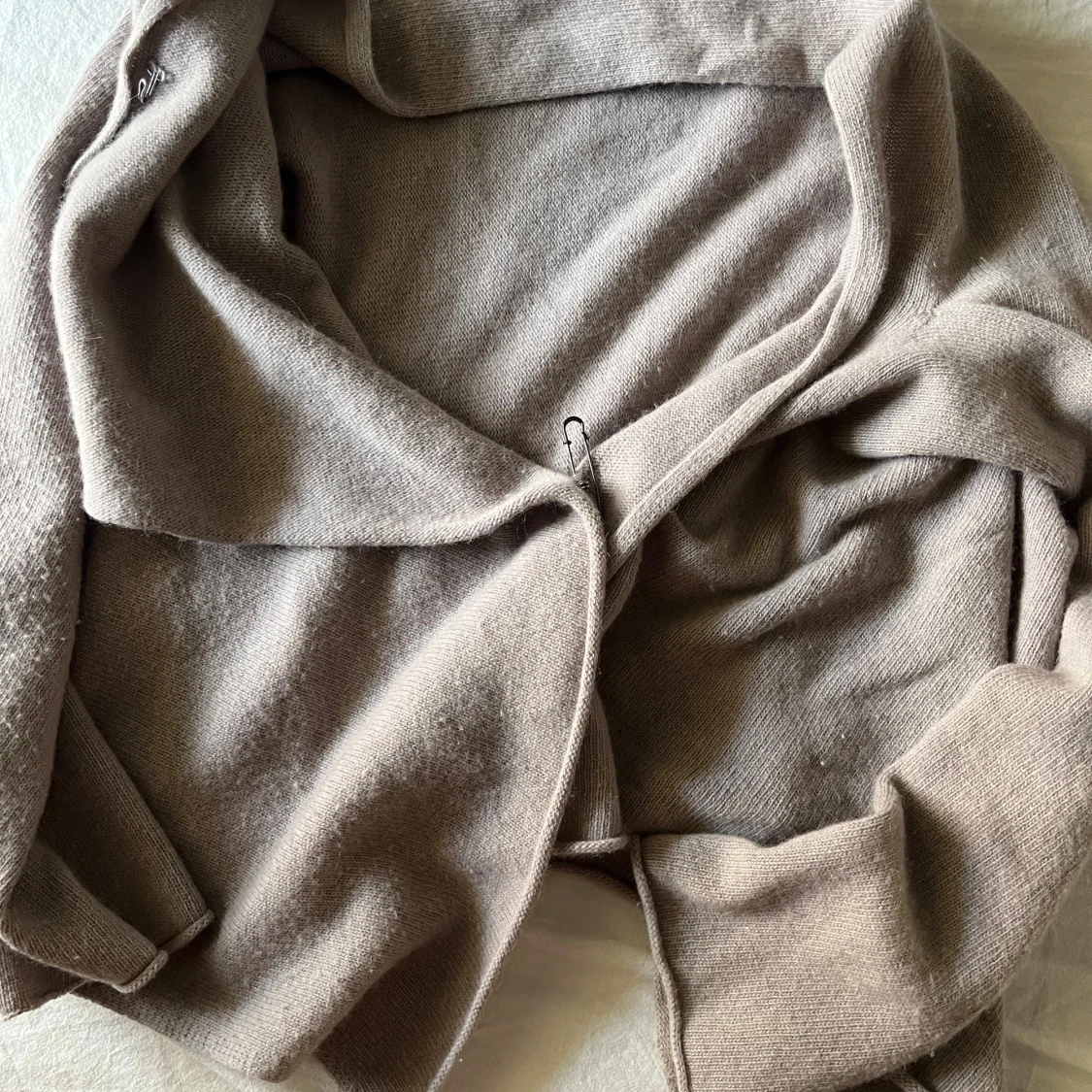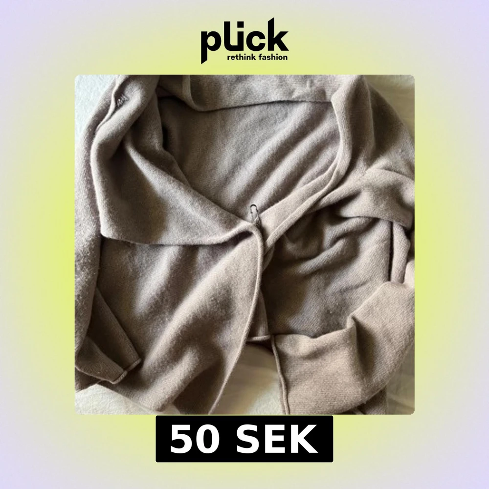 Mysig beige stickad kofta med bred krage och enkel design. Perfekt att slänga på sig över en t-shirt eller topp. Koftan har en avslappnad passform och är tillverkad i ett mjukt stickat material.