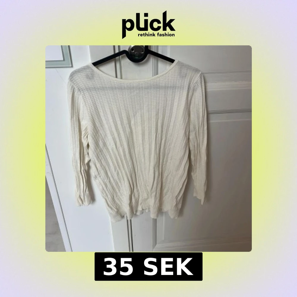 Säljer en vit ribbad tröja från Stockh LM i storlek M. Tröjan har lång ärm, rund halsringning och är tillverkad i ett mjukt, lätt material som passar perfekt till lager-på-lager. Enkel och stilren design som funkar till många outfits.