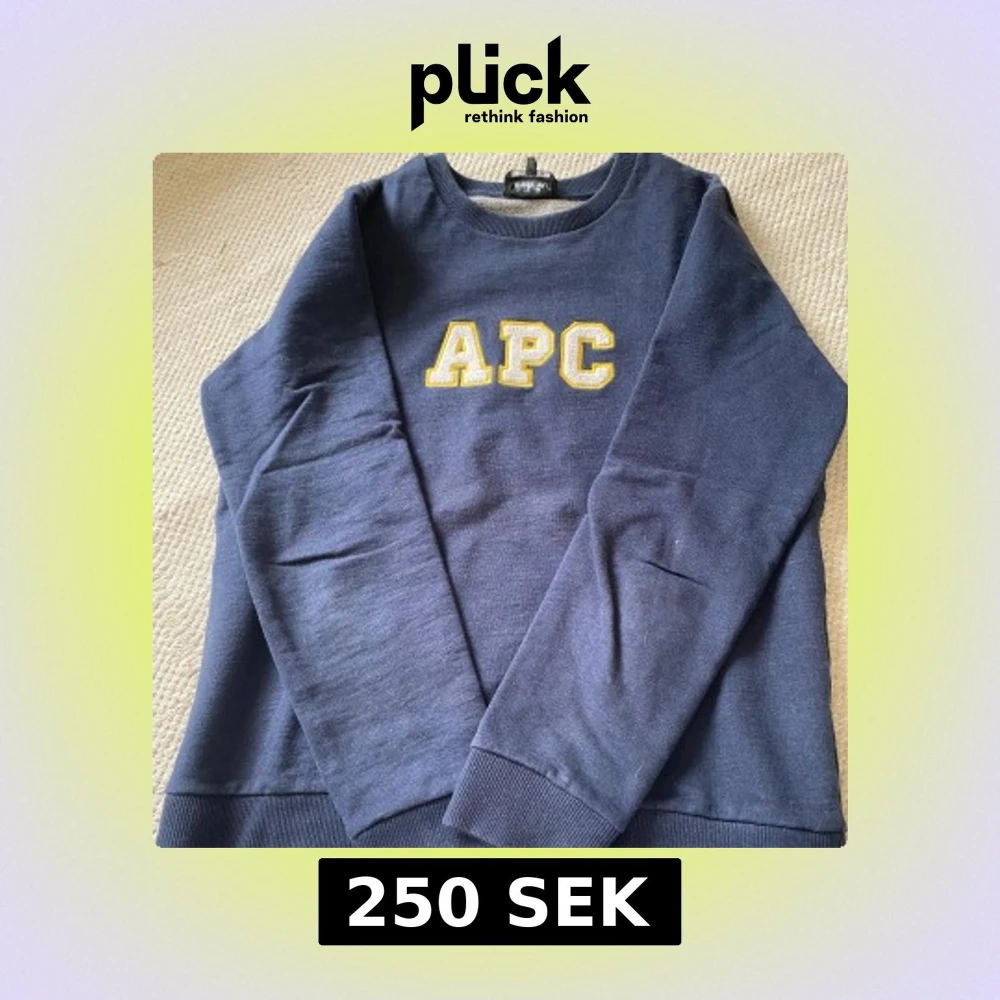 Snygg mörkblå sweatshirt från A.P.C. med broderad vit och gul logga på bröstet. Perfekt för dig som gillar stilrena college-vibbar och fransk design.