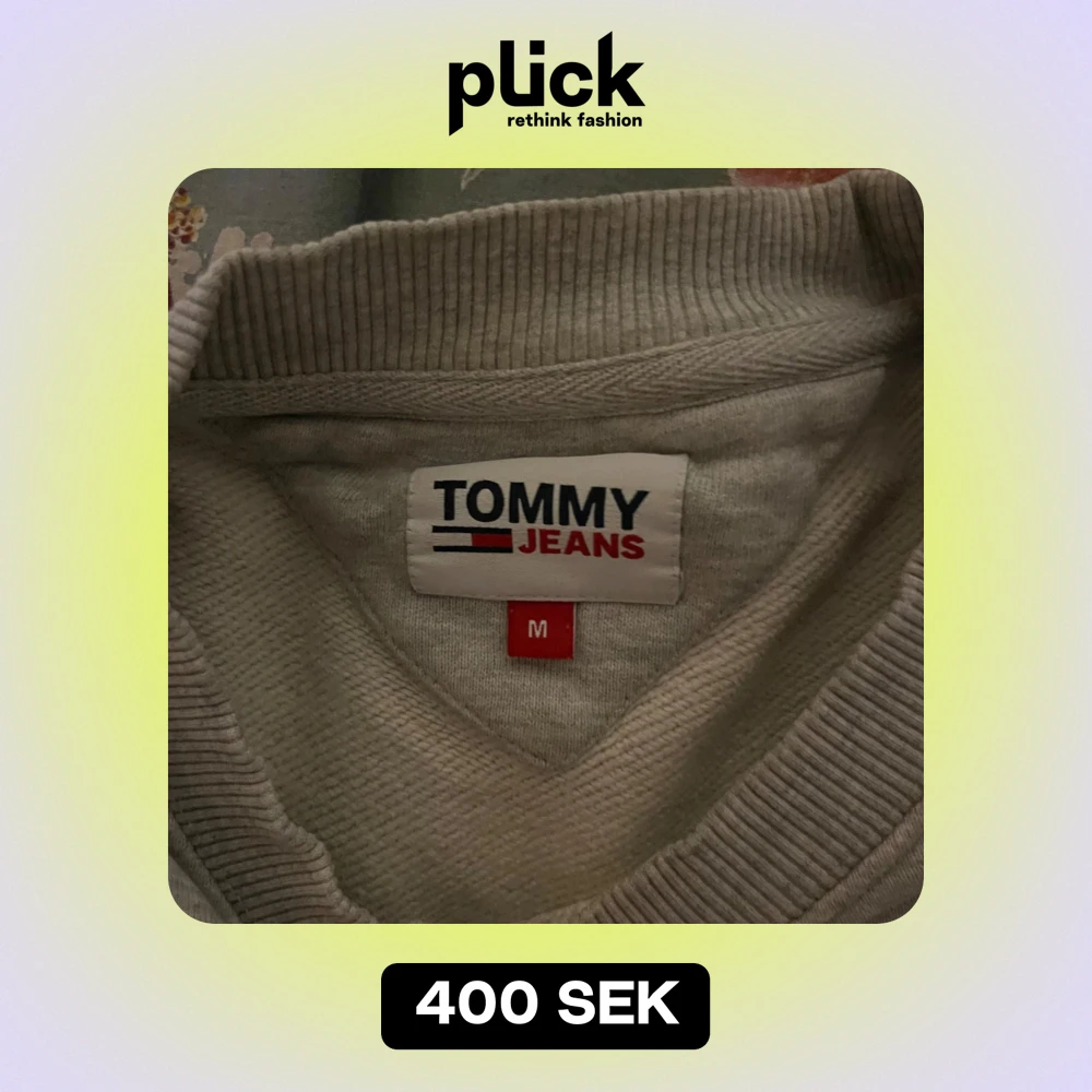 Säljer en stilren grå sweatshirt från Tommy Jeans i storlek M. Tröjan har en klassisk design med ribbade muddar och en liten logga på bröstet. Perfekt för en avslappnad look eller som ett lager under jackan. Passar både höst och vår!
