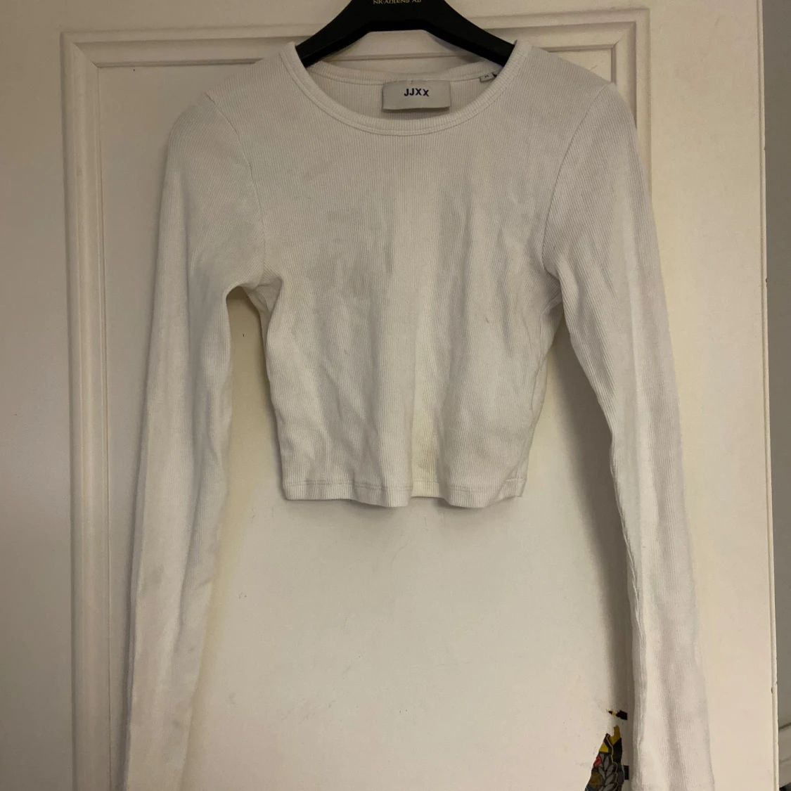 Säljer en stilren vit ribbad tröja från JJXX. Tröjan är croppad med långa ärmar och har en enkel design som passar perfekt till olika outfits. Perfekt för dig som gillar en minimalistisk stil.