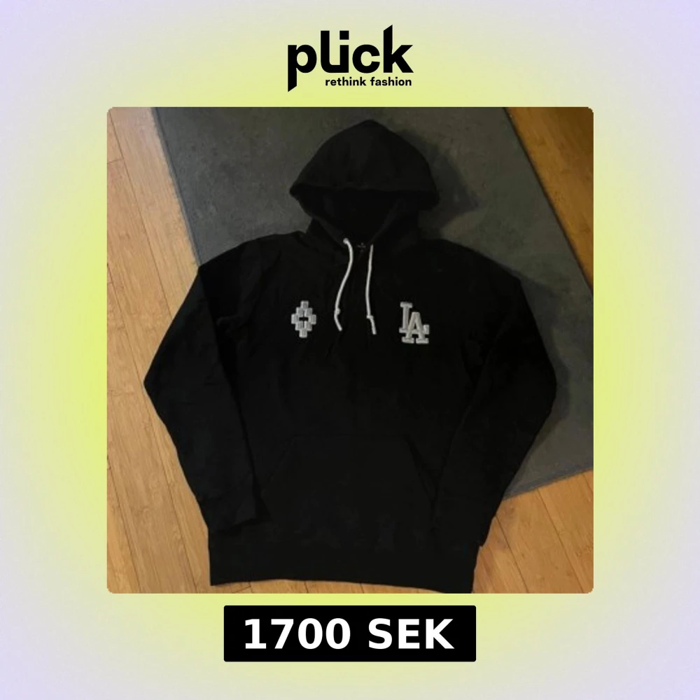 Säljer en svart hoodie från Marcelo Burlon med LA-logga på bröstet och ryggen. Perfekt för en avslappnad stil. En väldigt sällsynt modell som få äger