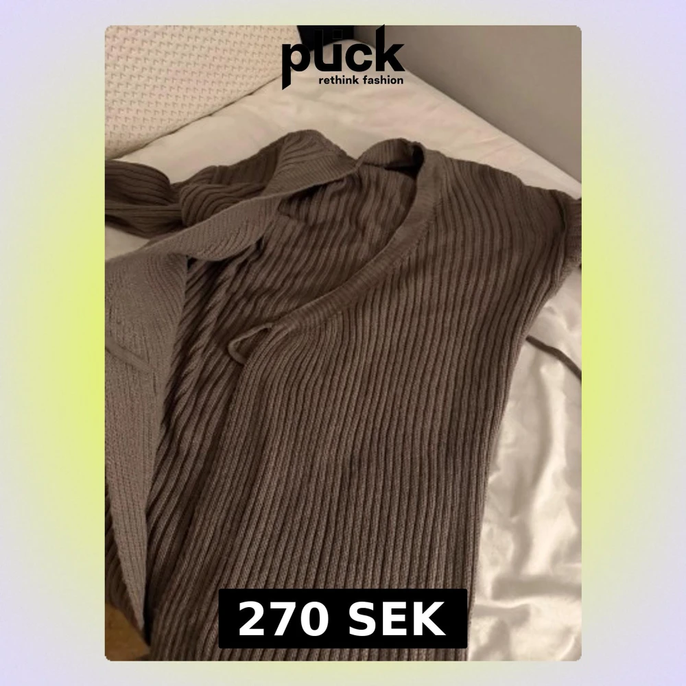 Mysig brun ribbstickad kofta med långa ärmar och knytband i midjan. Koftan har en djup V-ringning och är tillverkad i ett mjukt, tjockt material som passar perfekt för kyligare dagar. Enkel och stilren design som är lätt att matcha.