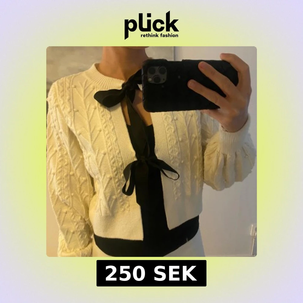 Säljer en söt vit stickad kofta med knytband framtill. Koftan har ett fint mönster och långa ärmar med ribbade muddar. Perfekt för att hålla sig varm och stilren.