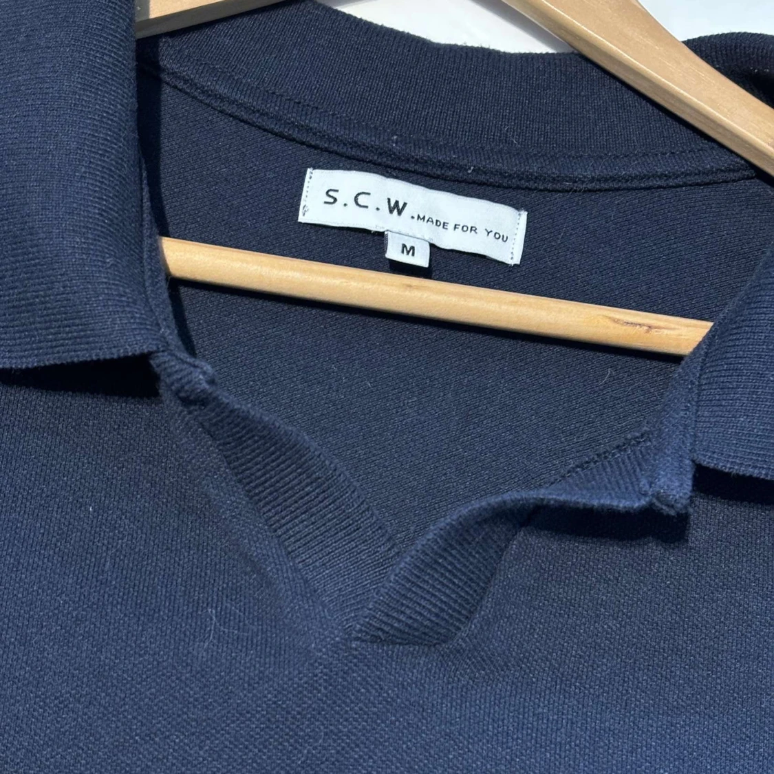 Klassisk mörkblå pikétröja från S.C.W. i storlek M. T
