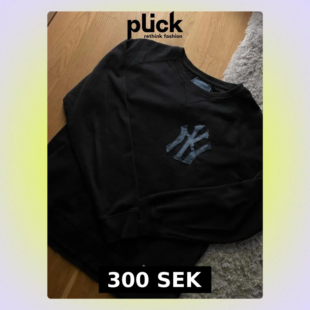 Gjord själ! Cool svart sweatshirt med stor NY-logga i denim på bröstet. Tröjan har rund halsringning och långa ärmar. Perfekt för dig som gillar streetwear och vill ha en avslappnad stil. Sitter som S