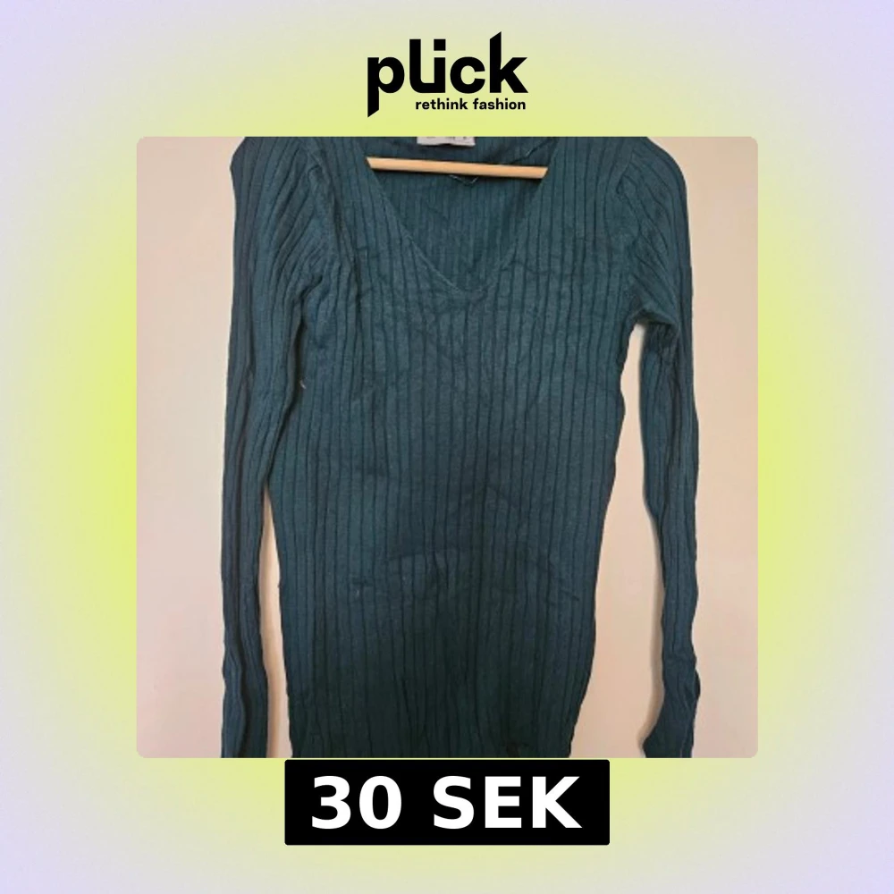 Snygg mörkgrön ribbad tröja från Janina med v-ringad hals och lång ärm. Tröjan har en slim passform och är perfekt för lager-på-lager under hösten eller vintern. Enkel att matcha med både jeans och kjol.