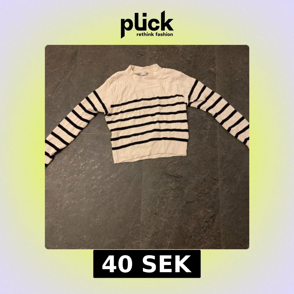 Säljer en snygg randig tröja med ribbad struktur. Tröjan är vit med svarta ränder och har en croppad passform. Perfekt för en stilren look!