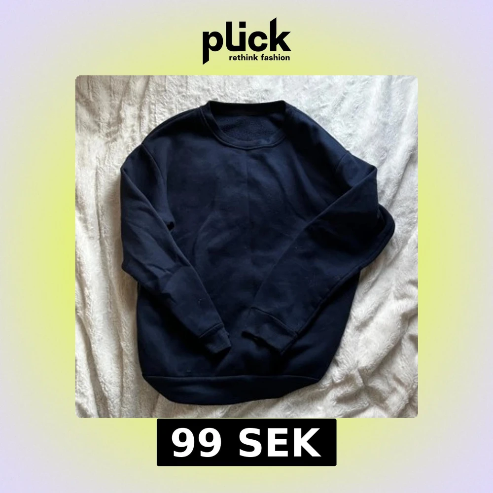 Säljer en stilren mörkblå sweatshirt med rund hals och långa ärmar. Perfekt för en avslappnad look. Passar bra till både jeans och joggers.