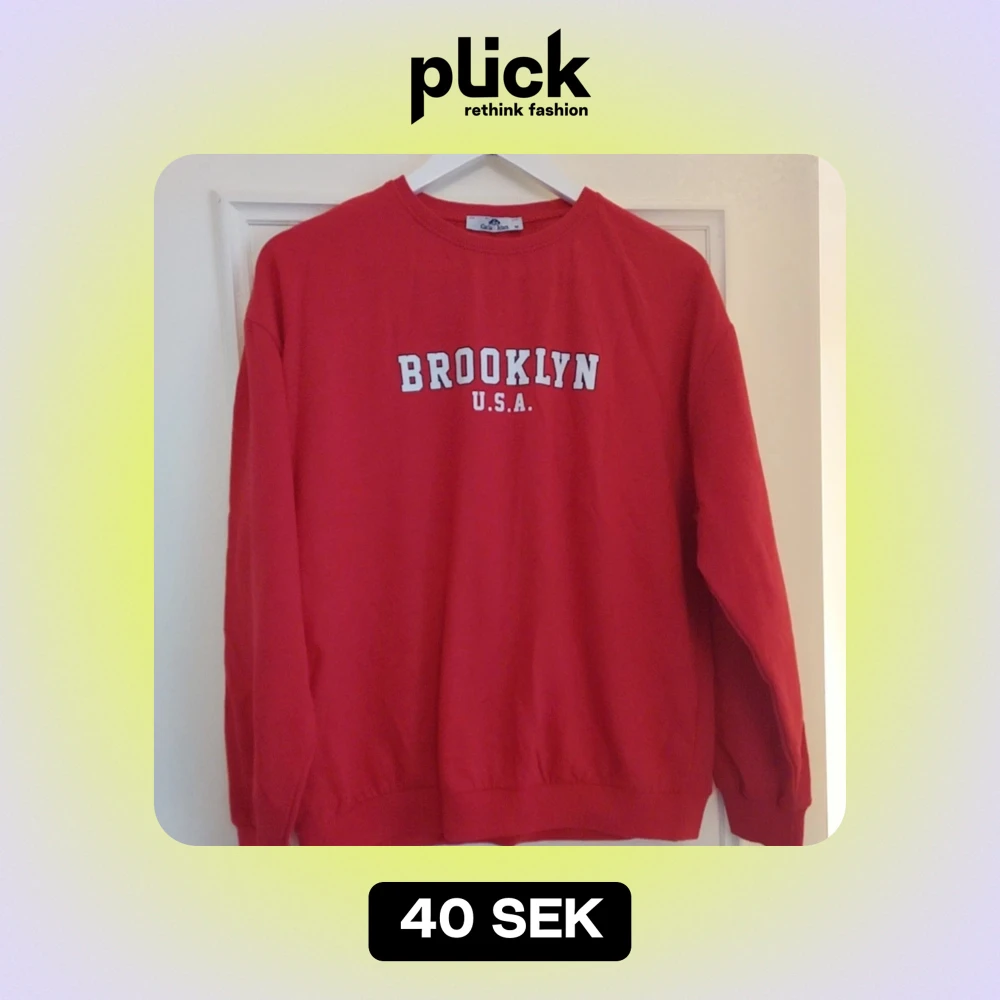 Säljer en cool röd sweatshirt från Carla Mara med texten 'Brooklyn U.S.A.' i vitt på bröstet. Perfekt för en avslappnad stil och passar bra till jeans eller joggers. Tröjan har långa ärmar och en bekväm passform. Perfekt för höst och vår!