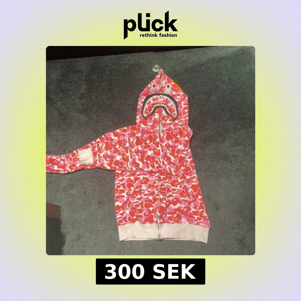 Säljer en BAPE Shark Hoodie i rosa, röd och vit camo bra skick och inga skador, hål osv. Kan tänka sälja för lägre pris så bara till att slänga ett förslag