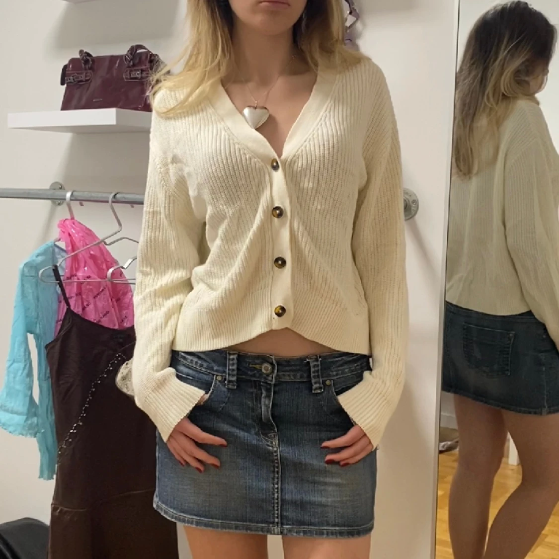 Mysig stickad crémevit kofta från Gina Tricot. Använd ett fåtal gånger. Storlek S men borde passa mellan XS-M.🖤