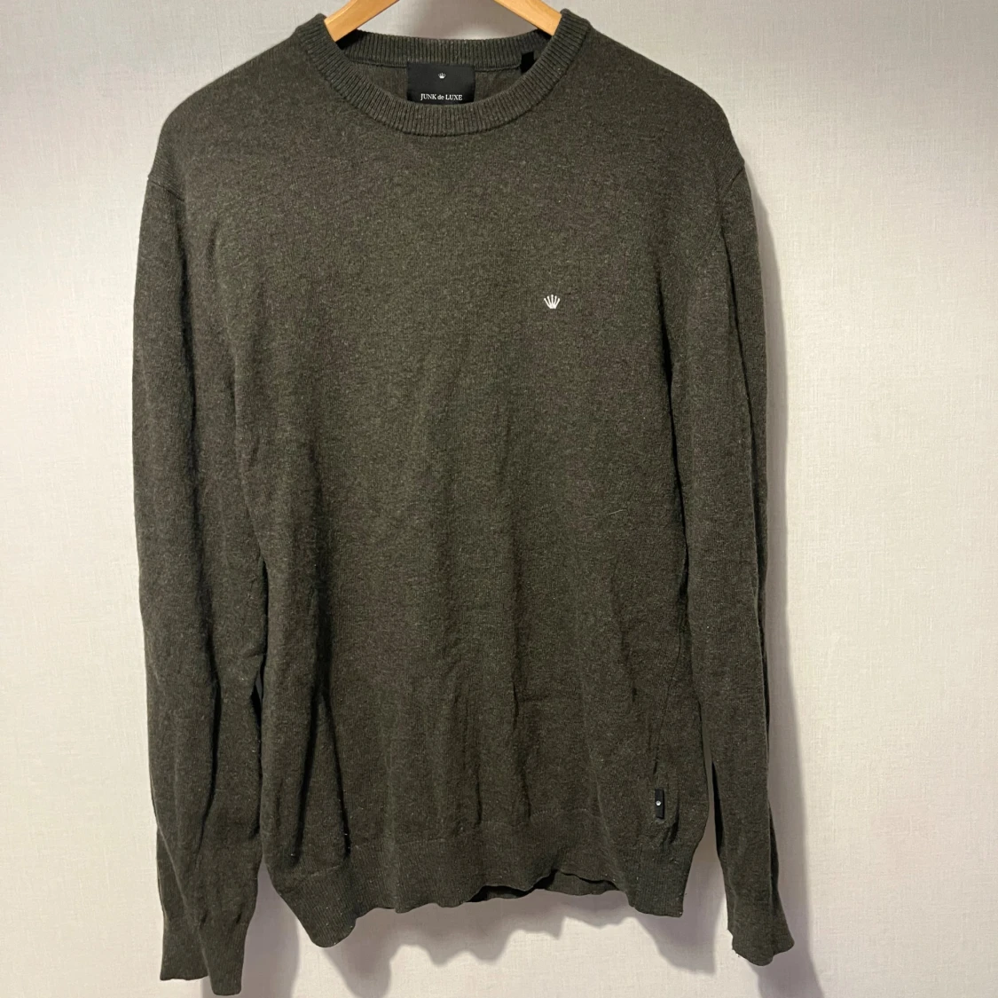 Ny snygg mörkgrå stickad tröja från Junk de Luxe med rund hals och diskret logga på bröstet. Tillverkad i en mjuk blandning av återvunnen italiensk lammull. Perfekt för dig som gillar stilrena och enkla plagg med en chill vibe. Nypris 899kr.