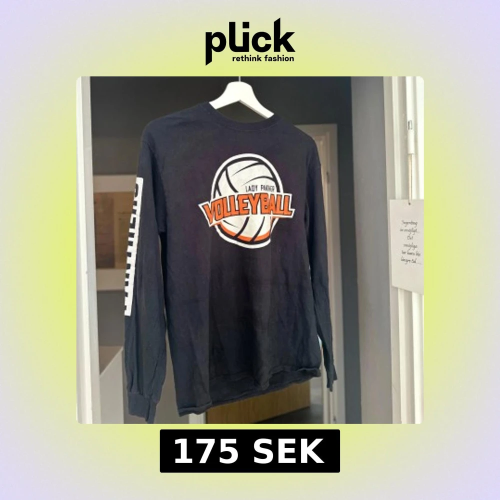 Svart långärmad tröja med stort tryck av en volleyboll och texten 'Lady Panther Volleyball' på bröstet. Tryck även längs ena ärmen i vitt. Perfekt för dig som gillar sportig stil och vill sticka ut med en cool grafisk design.