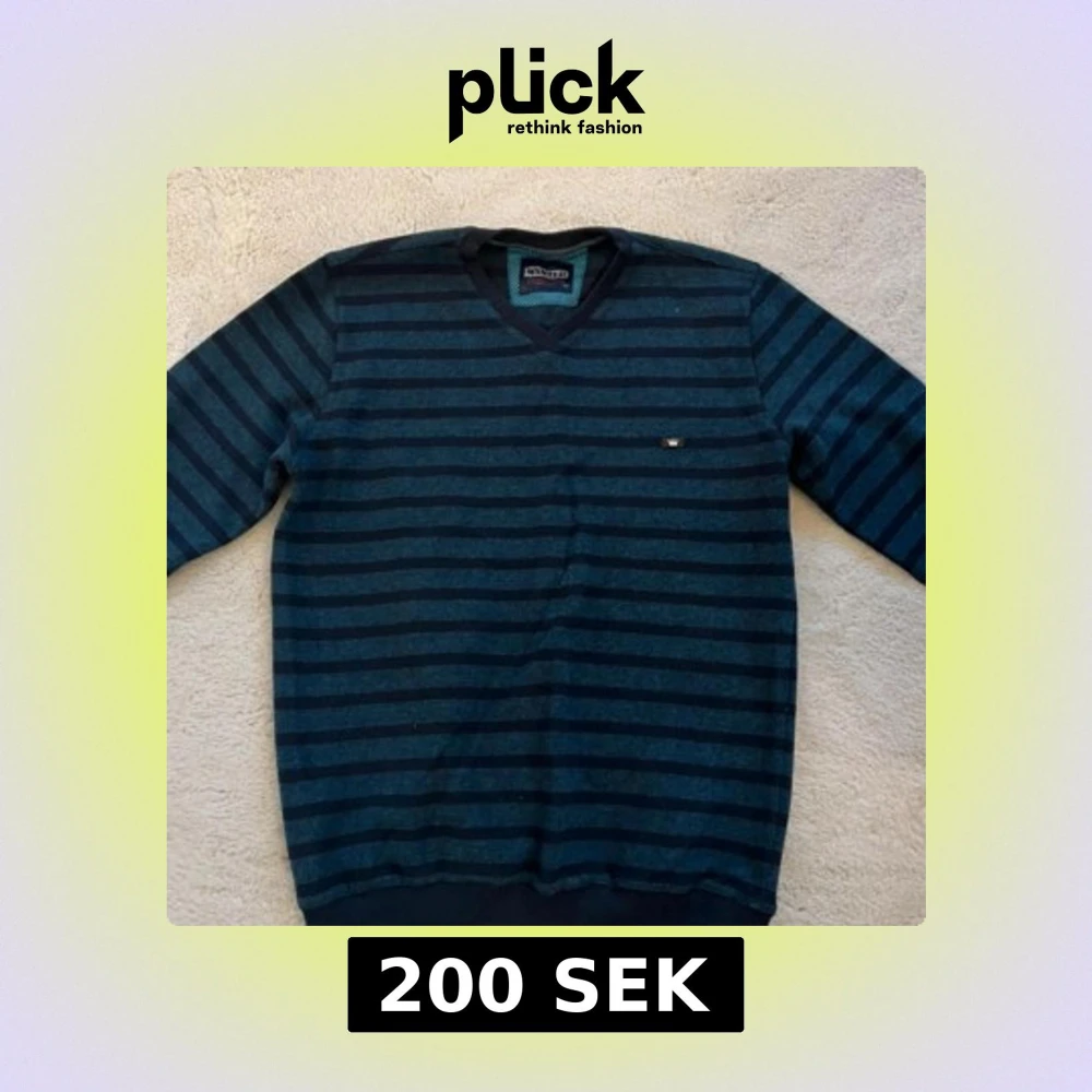 Snygg randig tröja från Wanted i marinblå och mörkblå toner. V-ringad hals och långärmad modell med ribbade muddar. Liten metallbadge på bröstet som detalj. Perfekt för dig som gillar stilrena och klassiska mönster.