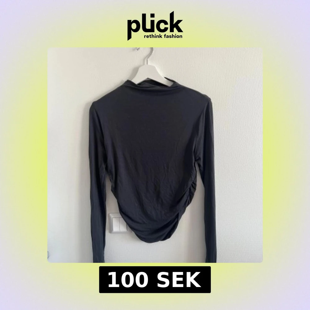 Säljer en svart långärmad topp med snygg drapering i sidan. Tunn och mjuk i materialet, perfekt till många olika outfits. Enkel och stilren design med rund hals.