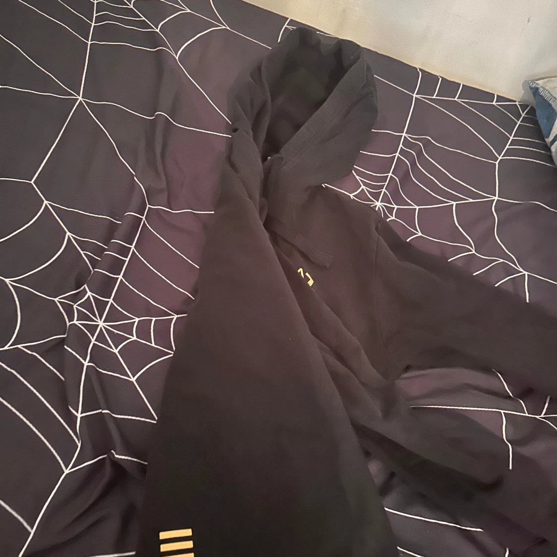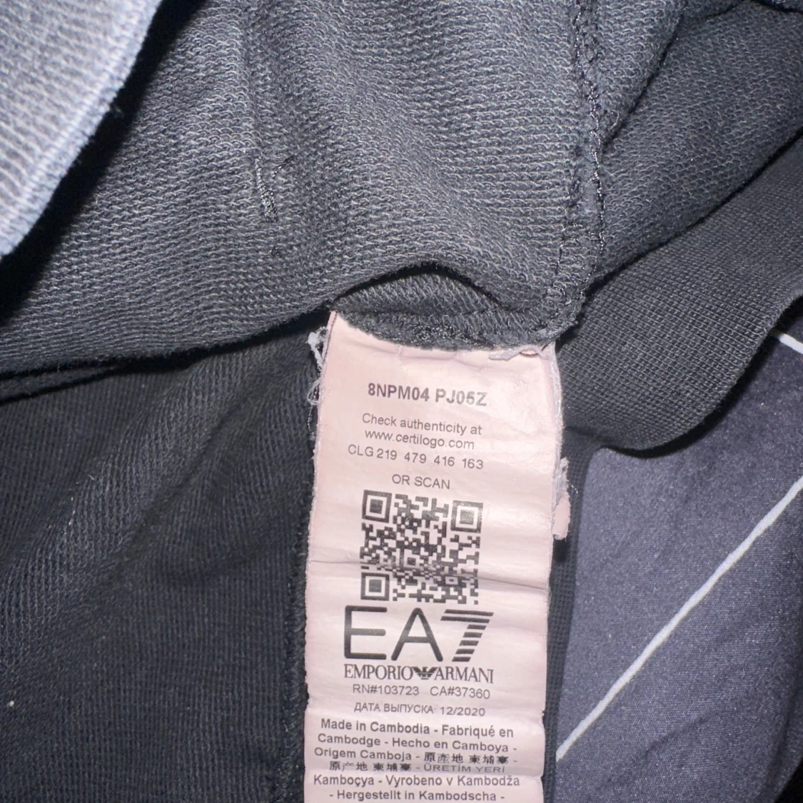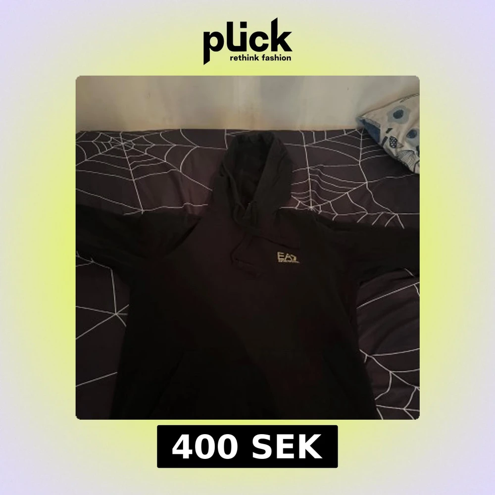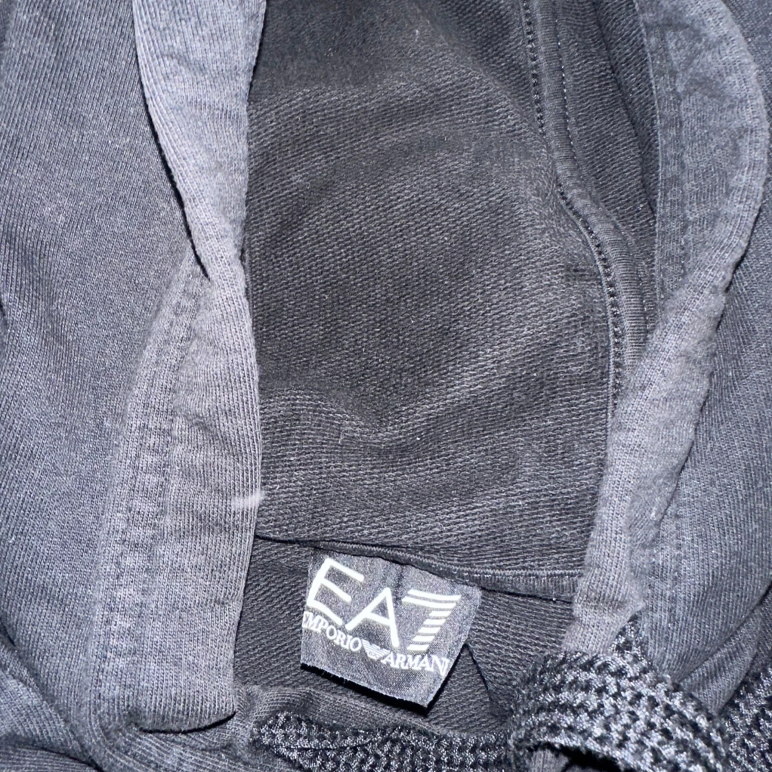 Säljer en svart hoodie från Emporio Armani EA7 med logga på bröstet och ärmen. Klassisk huva med dragsko och känguruficka framtill. Perfekt för en stilren och avslappnad look. Passar jätte bra till S och M