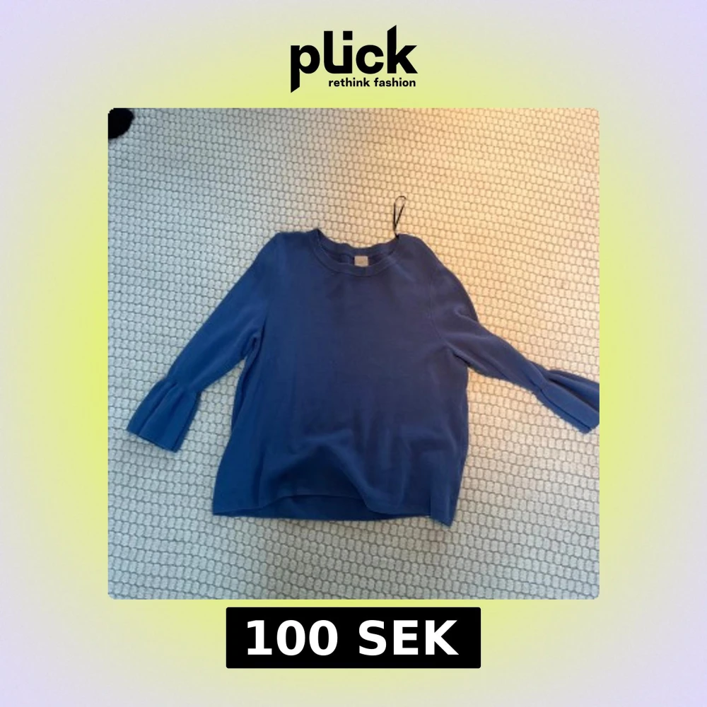 Snygg blå tröja med unika volangdetaljer vid ärmsluten. Perfekt för att ge en stilren look med en twist. Tröjan har en rund hals och är tillverkad i ett mjukt material som känns skönt mot huden.