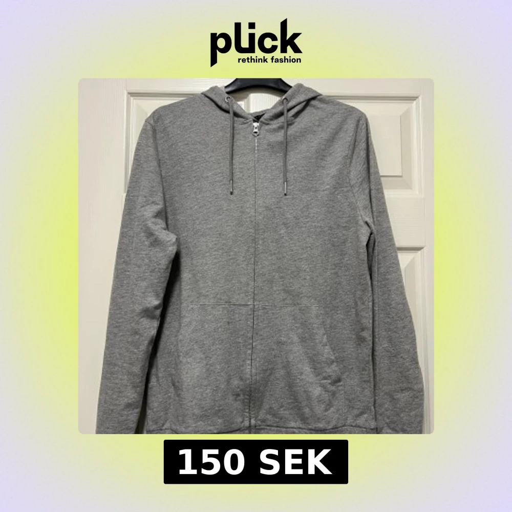 En stilren grå hoodie från ASOS DESIGN med dragkedja framtill, huva med snörning och två fickor. Tillverkad i mjuk bomullsblandning för extra komfort. Perfekt för chill dagar eller när du vill ha en enkel och clean look. Liten fläck finns, men syns knappt. Se sista bild. Sparsamt använd, så fint skick!