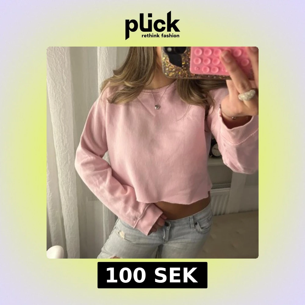 Superfin ljusrosa croppad sweatshirt som jag köpte som ”avklippt” nertill med långa ärmar. Det är fint att ha linne under också! Storlek M.
