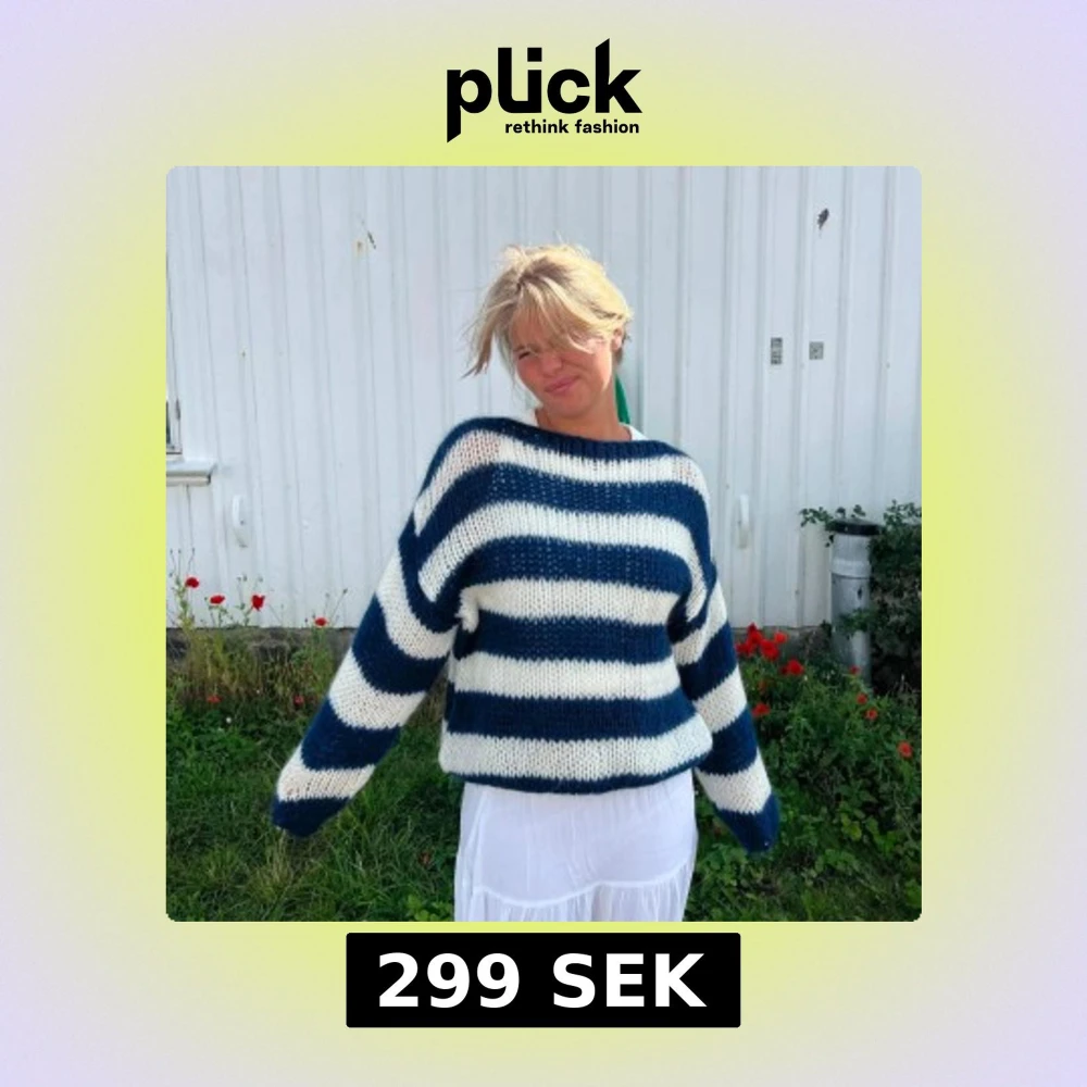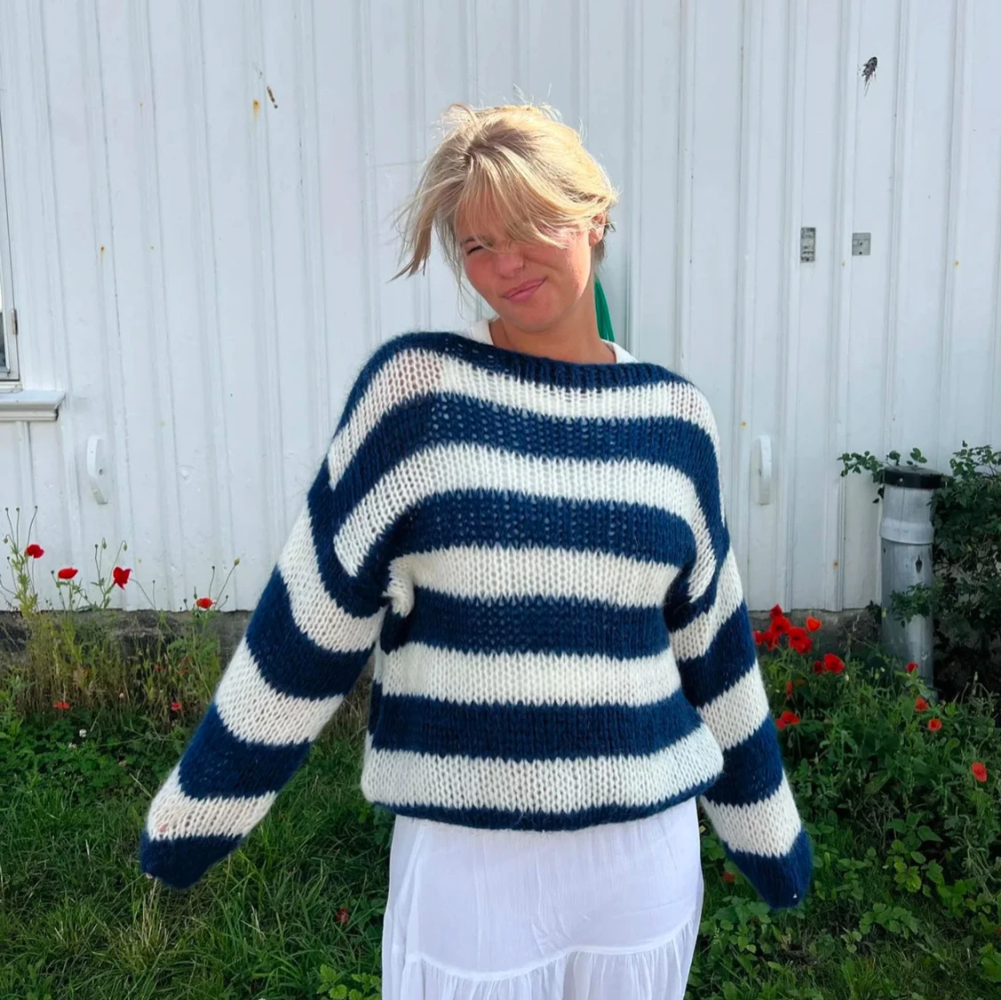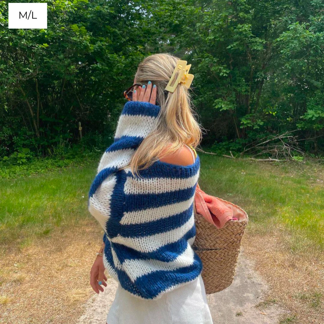 Blå och vit randig stickad tröja från DesignBySi. Använt fåtal gånger. Original pris 529kr.