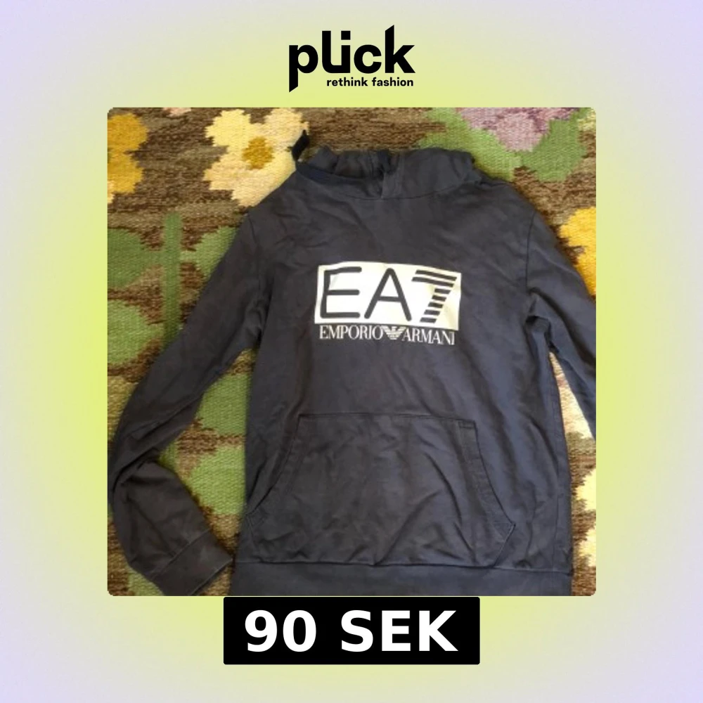Snygg mörkblå hoodie från Emporio Armani EA7 med stor logga framtill. Tröjan har huva, lång ärm och en klassisk känguruficka. Perfekt för dig som gillar streetwear och vill ha en stilren look med premiumkänsla.