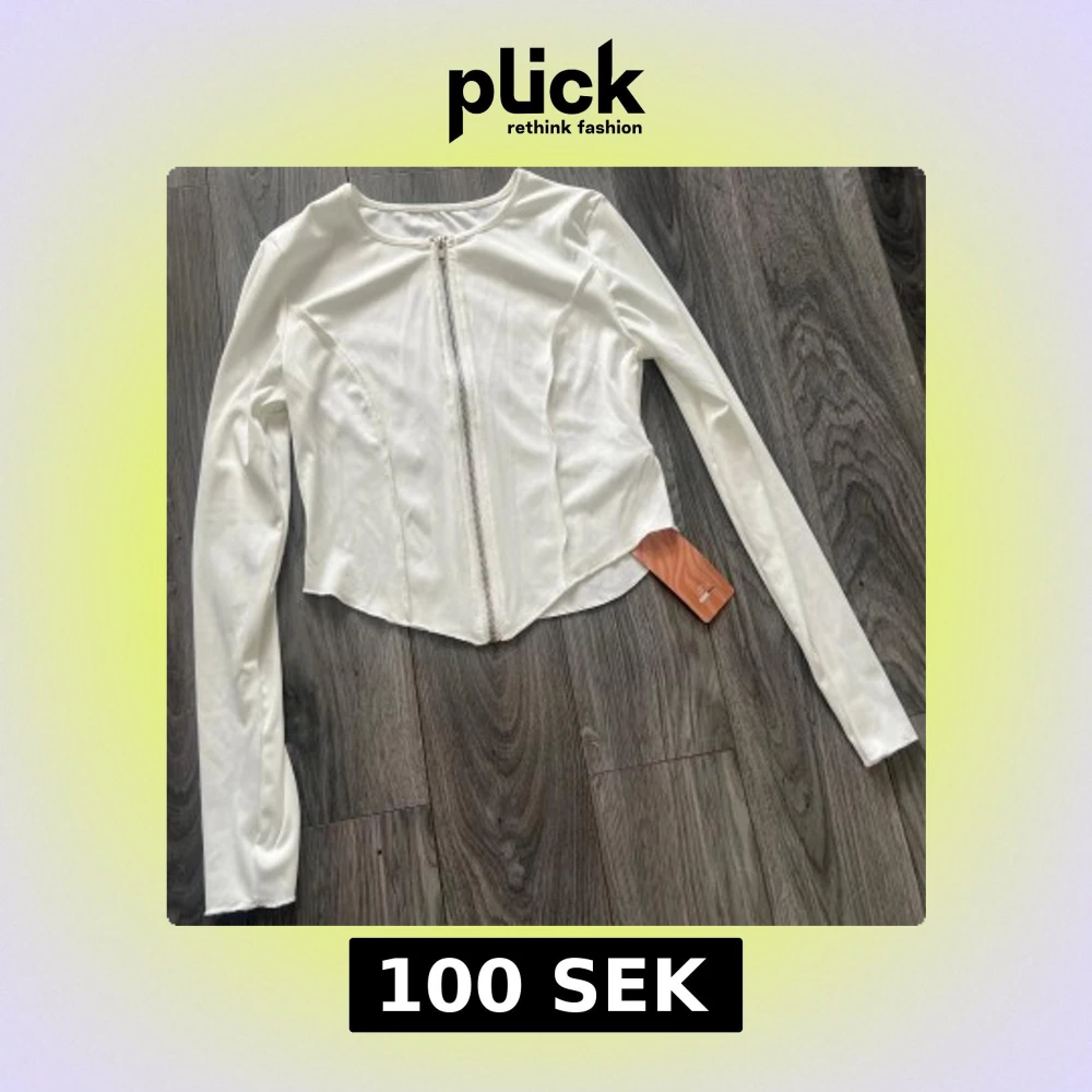 Snygg vit topp med lång ärm och dragkedja framtill. Superfin passform och skön att ha på sig, antingen som topp eller också som kofta med något på sig under🌸