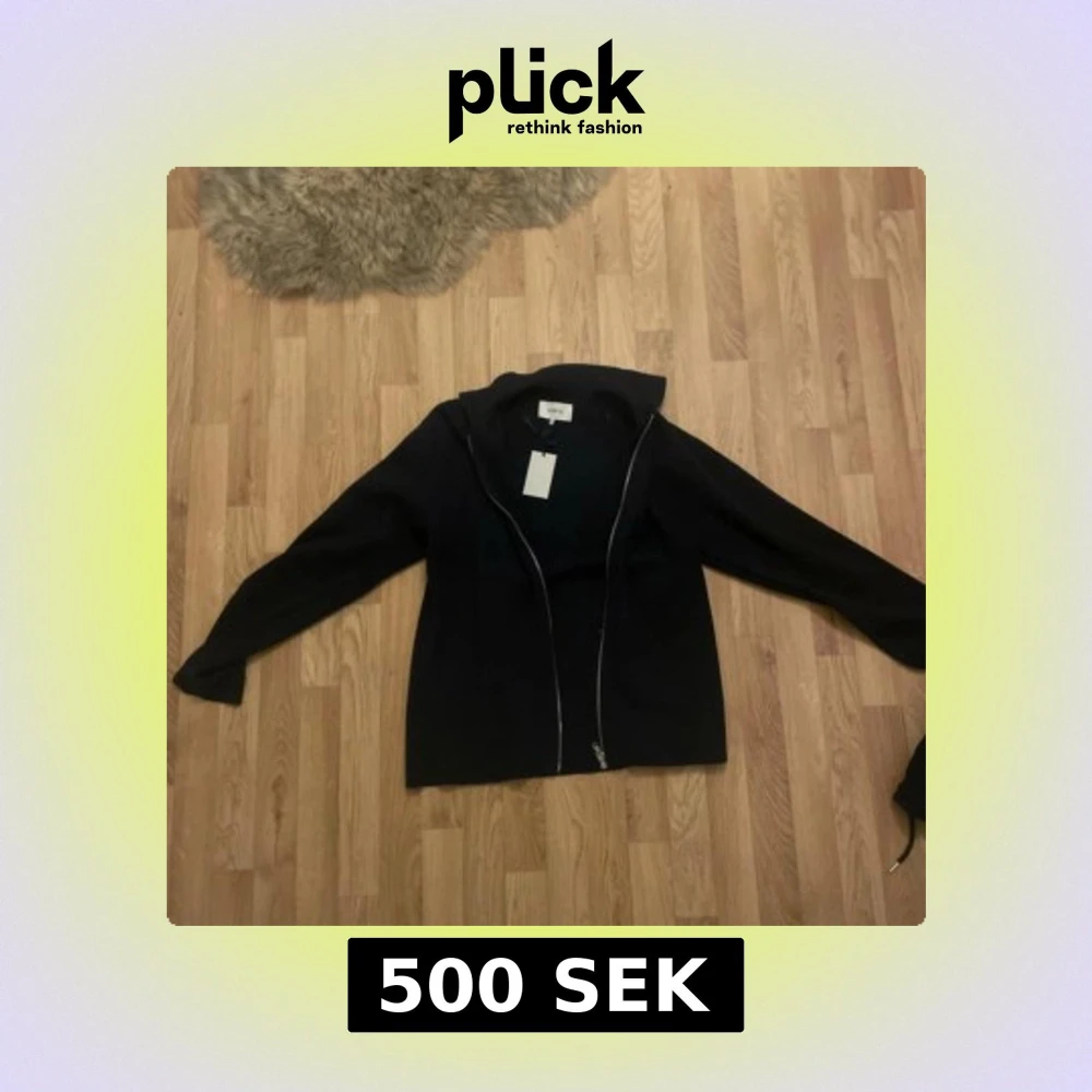 Svart jacka från Norvie i storlek M. Jackan har en stilren design med lång ärm och hel dragkedja framtill. Perfekt för dig som gillar en enkel och clean look. Materialet känns mjukt och passar bra till lager-på-lager-stil.