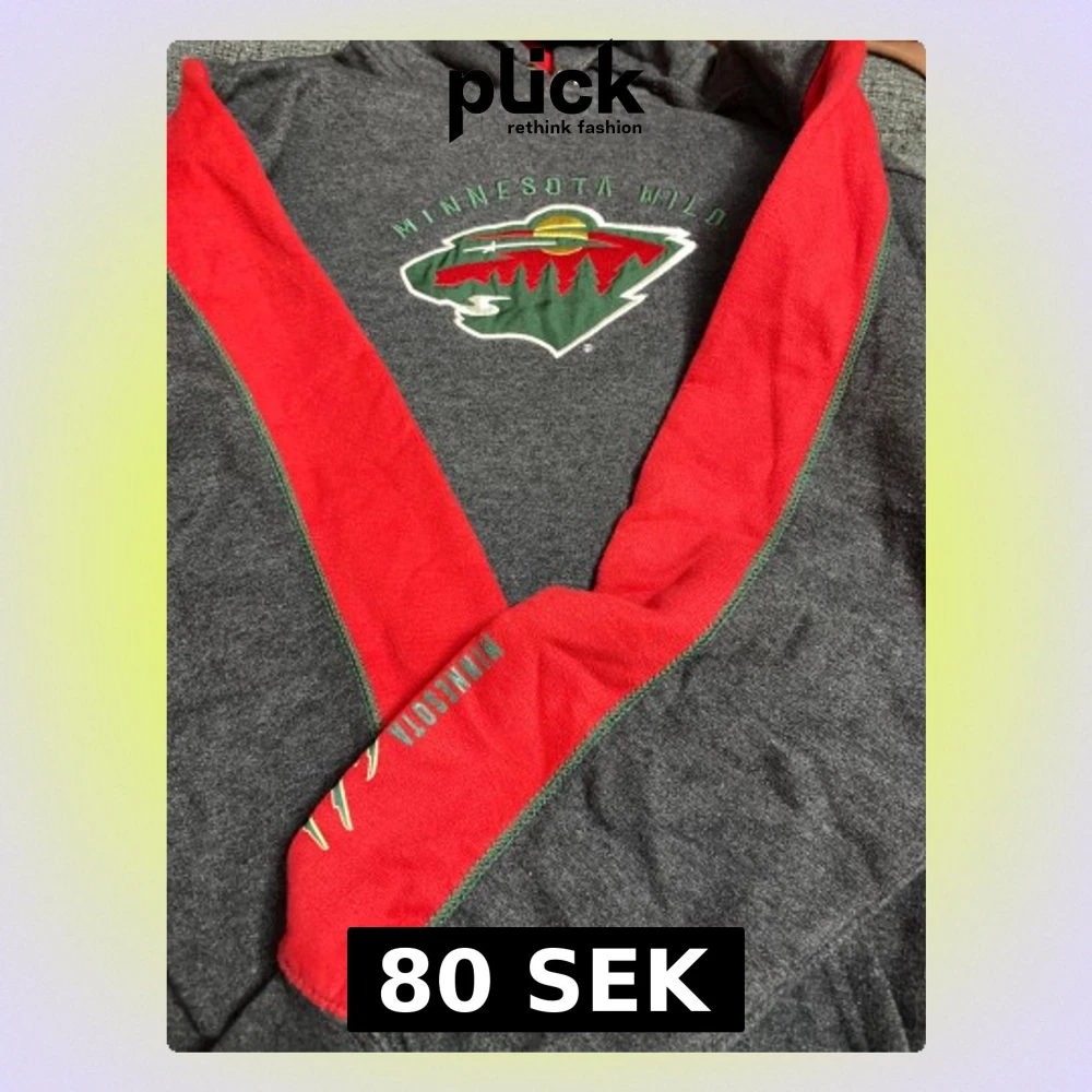 Snygg grå hoodie från Majestic med Minnesota Wild-logga broderad på bröstet. Insidan av huvan är röd med gröna detaljer och texten 'Minnesota'. Perfekt för dig som gillar hockey och vill ha en sportig look. Mjuk och skön bomullsmix med huva och långärmad passform.